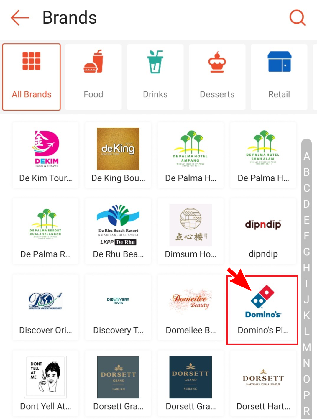 步骤2:寻找Domino’s Pizza,点击进入就会显示以上美食券了!