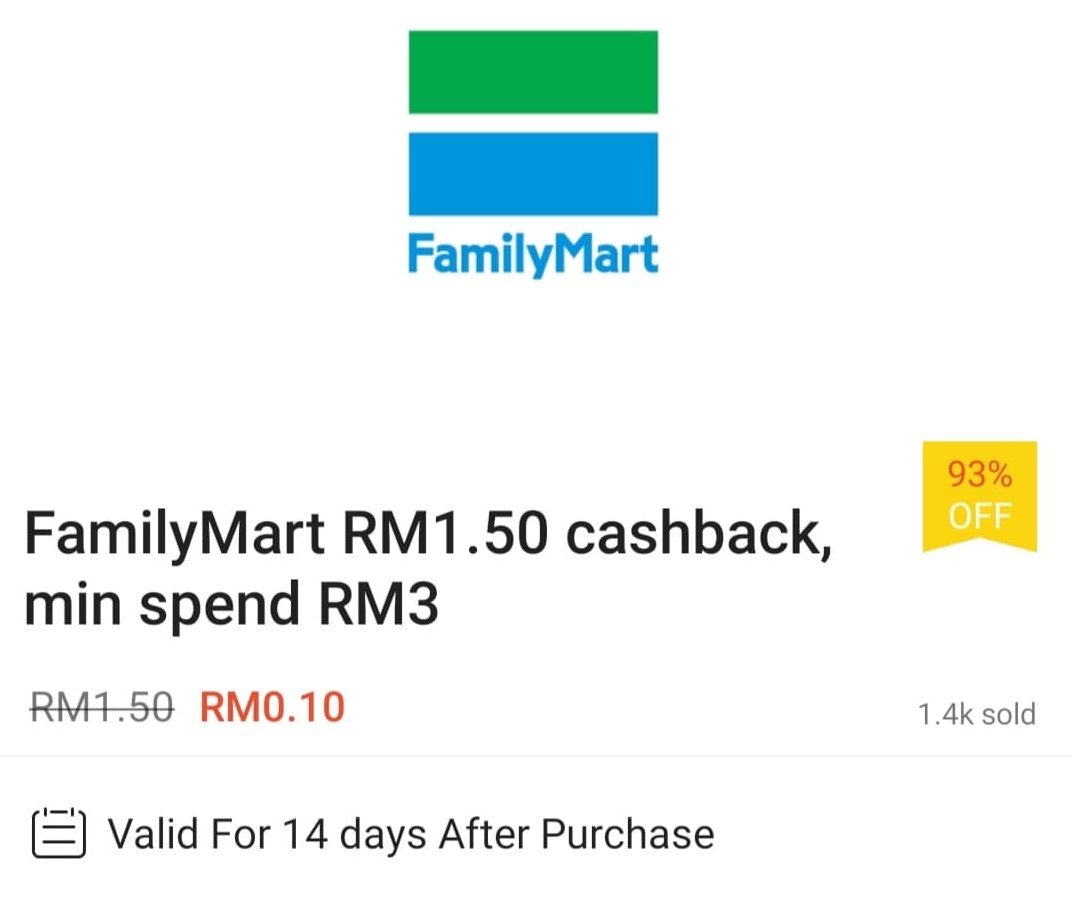 ▼ 另外,在Shopee 购买FamilyMart 现金回扣礼券只需RM0.10!只需消费RM3就可获得RM1.50 现金回扣!