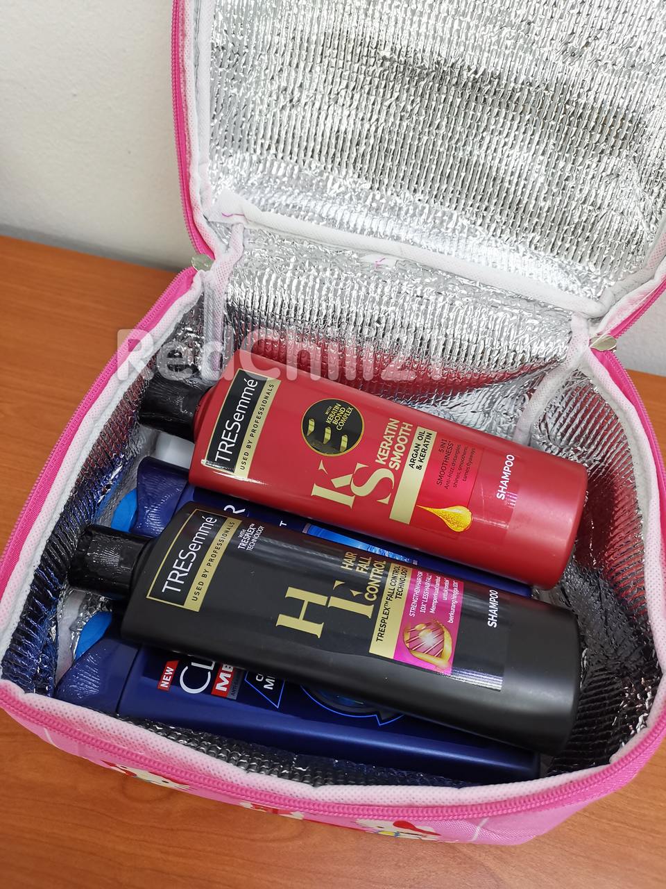 ▼ 手提饭盒袋可装上5瓶洗发液(可想而知容量是蛮大的哦!)