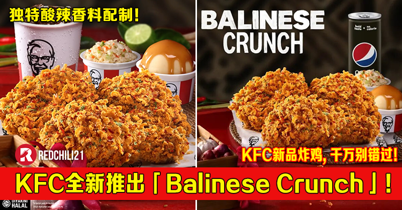 今日大马KFC推出新品「Balinese Crunch」!想吃的朋友,可以通过外卖平台订购,还可享有高达35%折扣!