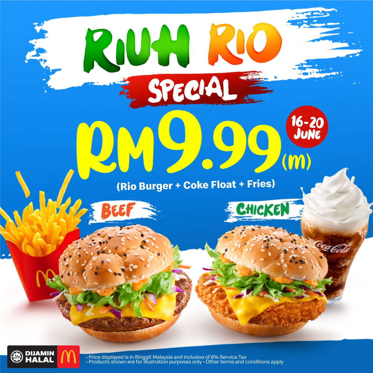 大马麦当劳再次推出【Riuh Rio Special】特别优惠,2种汉堡套餐只需RM9.99!
