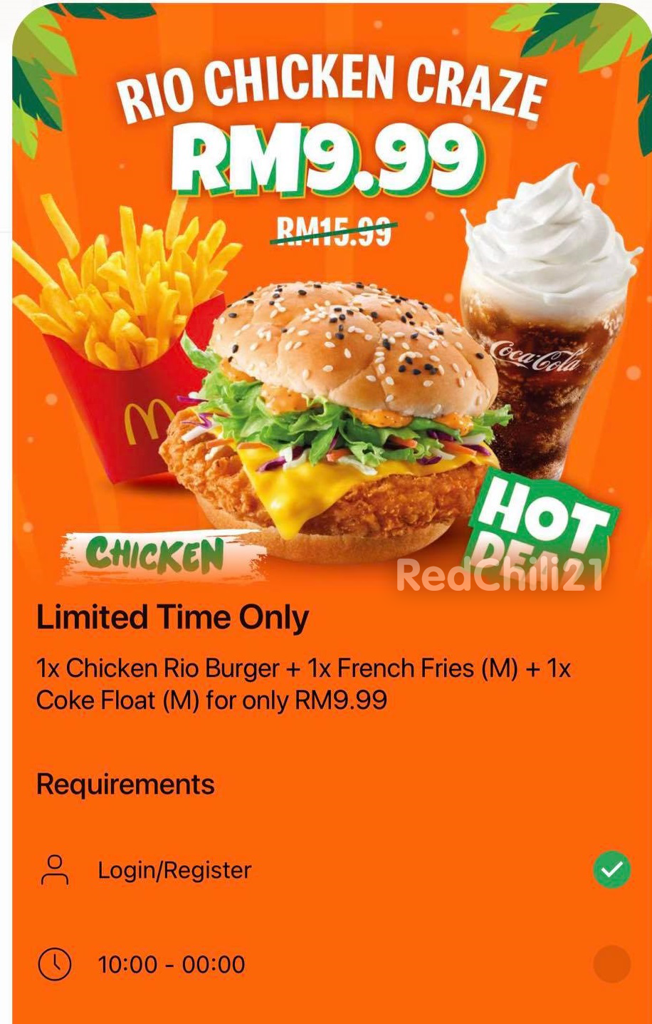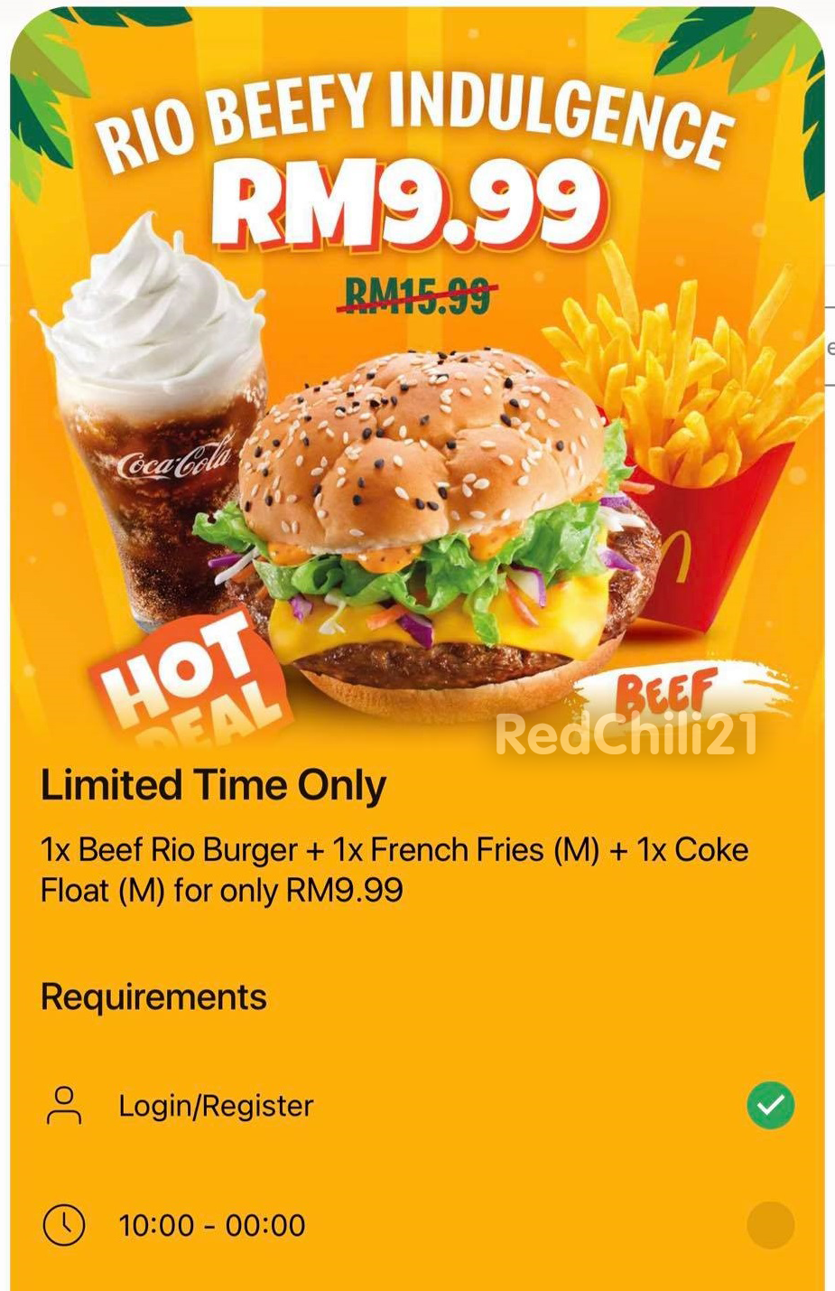 促销活动:大马McDonald’s App 推出【Riuh Rio Special】RM9.99 汉堡套餐优惠!