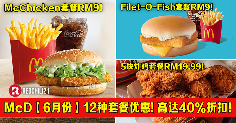 另外~McD还推出【6月份】12种套餐优惠!高达40%折扣!