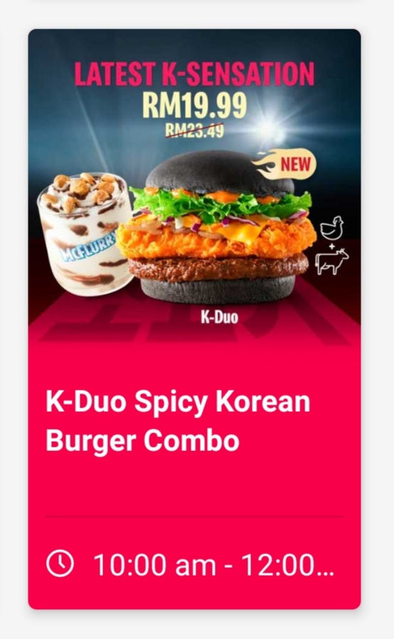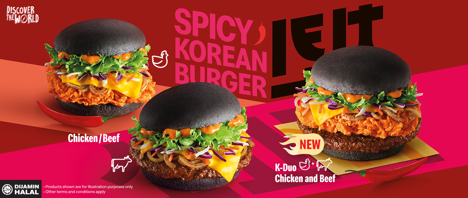 好消息~McD Spicy Korean Burger 回归啦!爱吃这款McD 韩式辣酱汉堡的朋友,有口福了!这次还全新推出K-Duo 鸡肉和牛肉饼汉堡!双层不同口味肉饼、一次过满足你的味蕾!