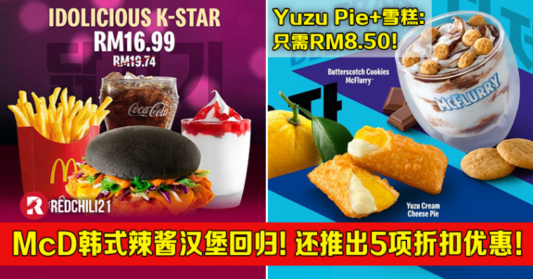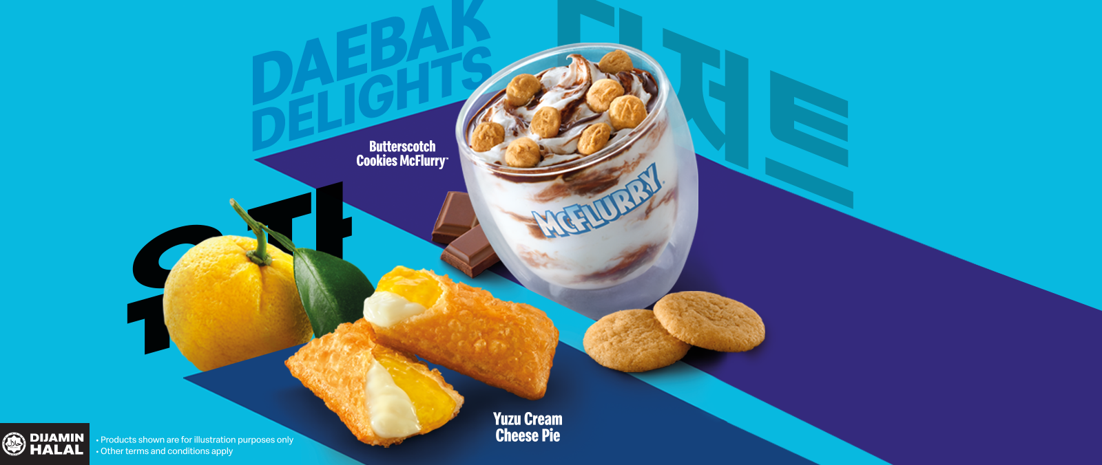 不仅McD 韩式辣酱汉堡正式回归,之前深受大家喜爱的甜点Yuzu Cream Cheese Pie 和Butterscotch Cookies McFlurry 都在这次菜单中哦!