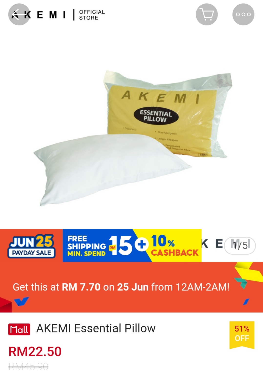 ▪ AKEMI Essential Pillow – RM45.90 RM7.70