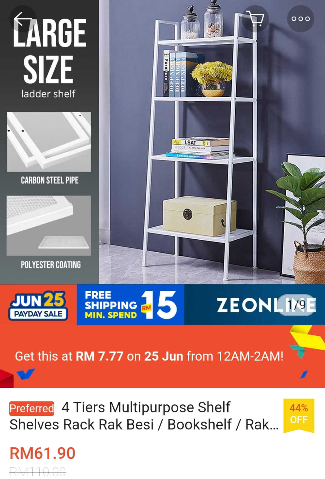 没错~就是在这2个小时里推出家居用品特别优惠!列如:Tefal 锅套组只需RM7.70、四层置物架只需RM7.77、Zebra 锅盖套组只需RM7.77!