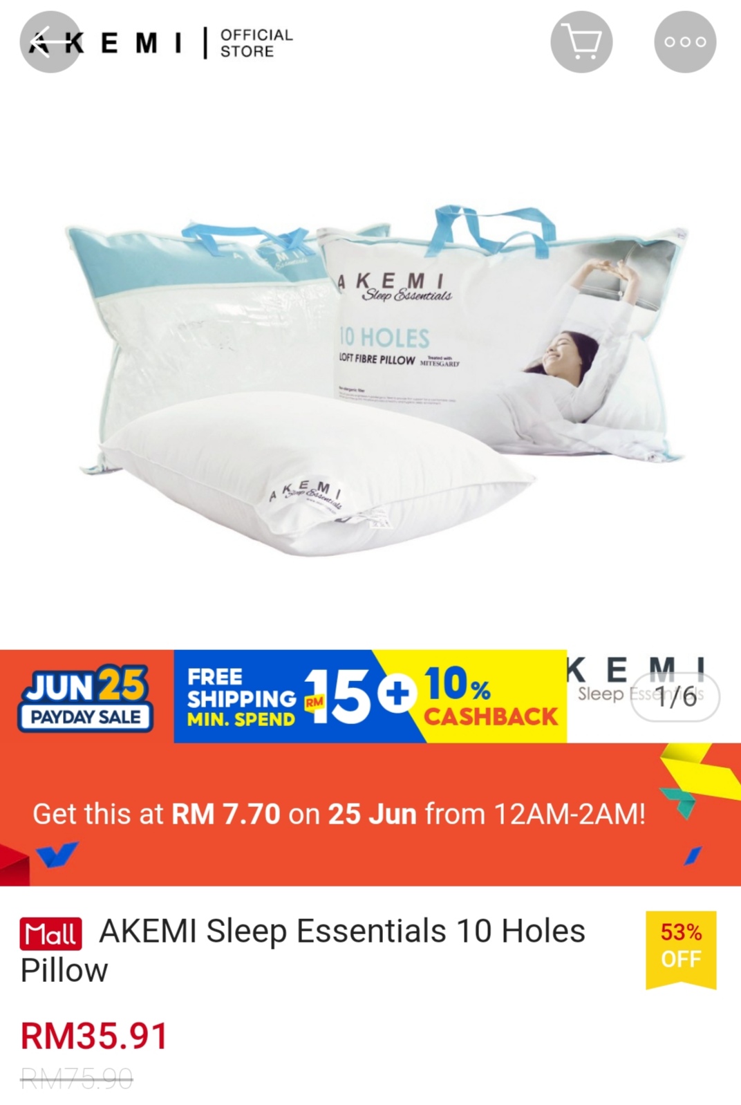 ▪ AKEMI Sleep Essentials 10 Holes Pillow – RM75.90 RM7.70