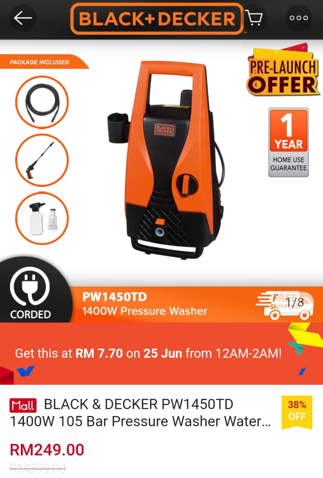▪ BLACK & DECKER PW1450TD 1400W 105 Bar Pressure Washer Water Jet 105 Bar ( PW1450 ) – RM399 RM7.70