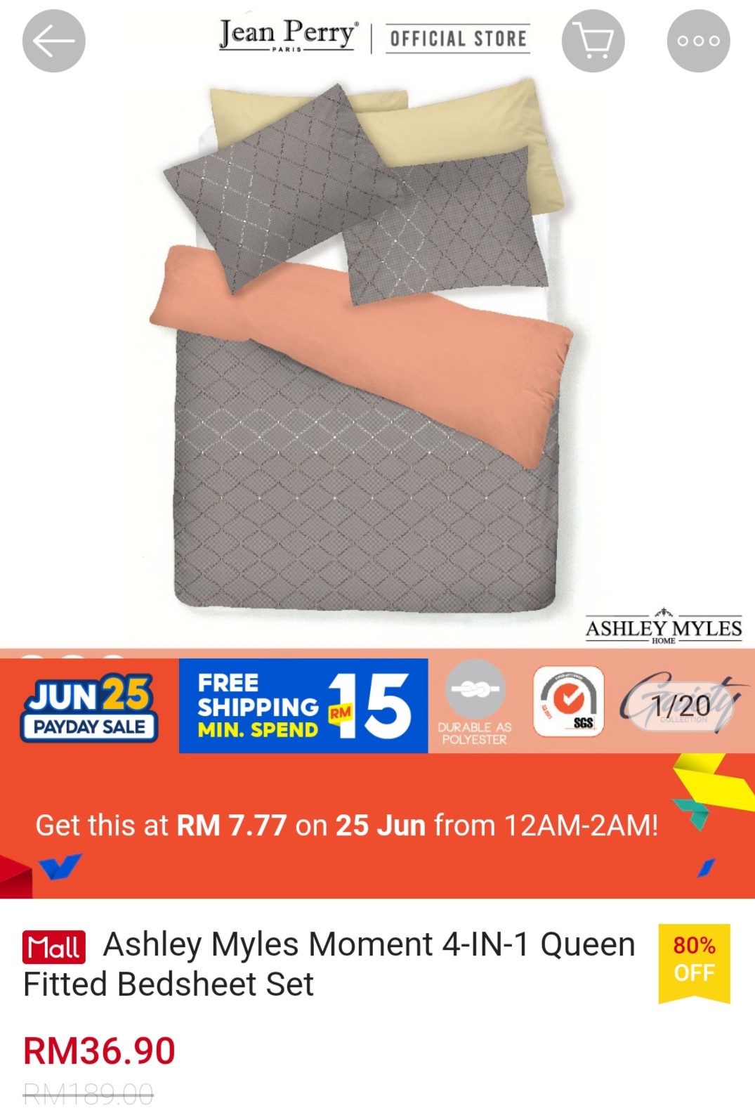 ▪ Ashley Myles Moment 4-IN-1 Queen Fitted Bedsheet Set – RM189 RM7.77