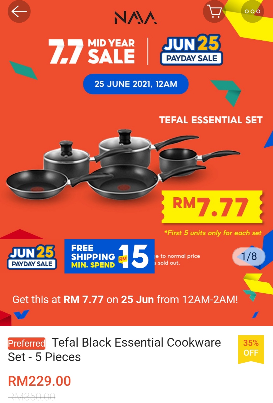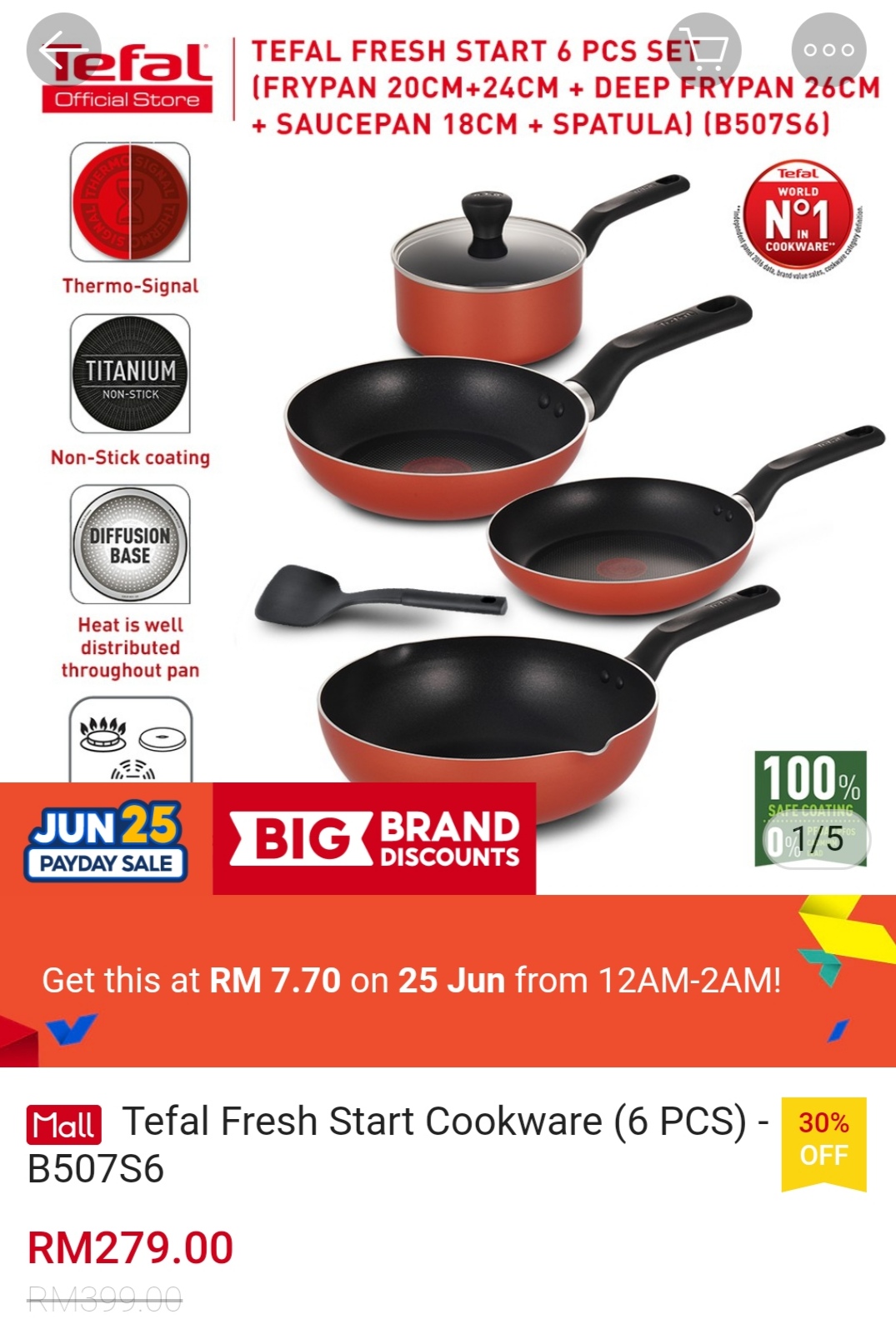 ▪ Tefal Fresh Start Cookware (6 PCS) – B507S6 – RM399 RM7.70