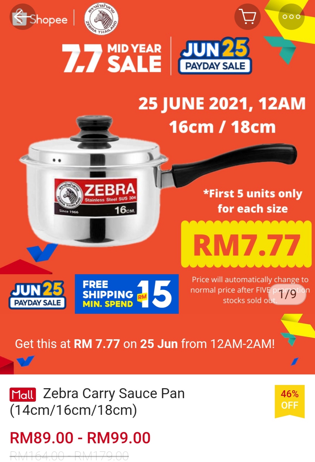 ▪ Zebra Carry Sauce Pan (14cm/16cm/18cm) – RM164 – RM179 RM7.77