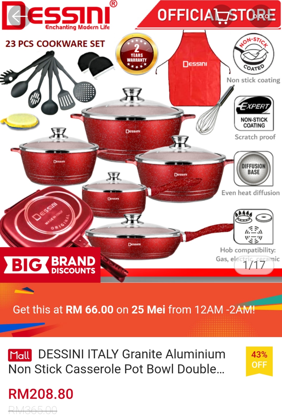 ▪ DESSINI ITALY Granite Aluminium Non Stick Casserole Pot Bowl Double Sided Grill Fry Pan Cookware Tool (23 Pcs) – RM208.80 RM66