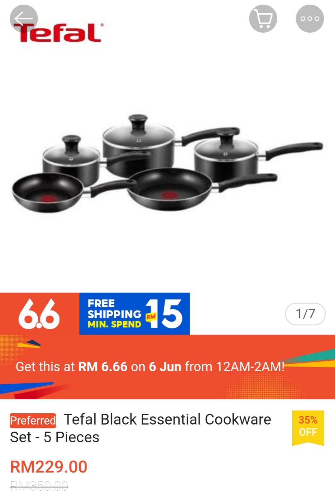 ▪ Tefal Black Essential Cookware Set – 5 Pieces – RM350 RM6.66