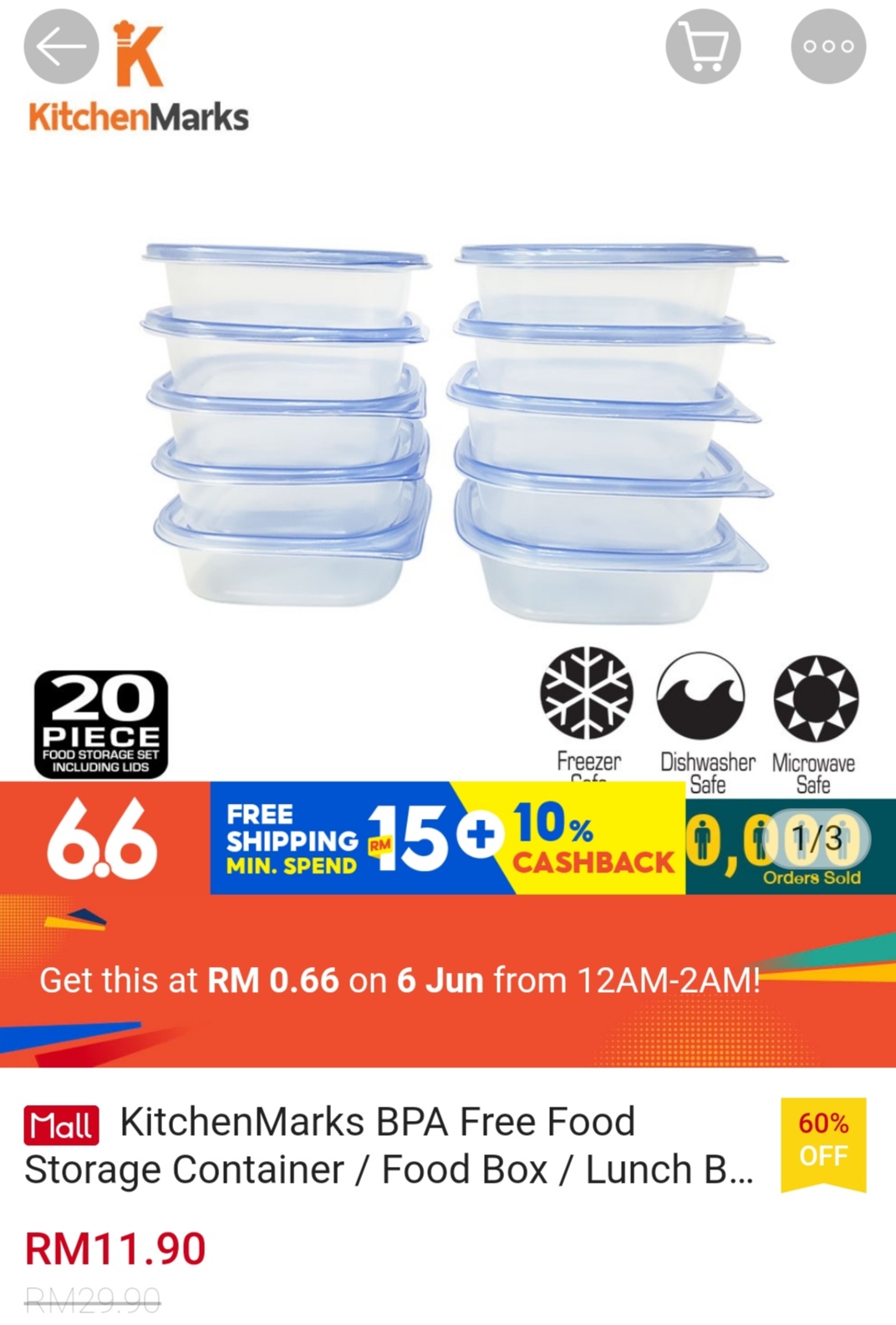 ▪ KitchenMarks BPA Free Food Storage Container / Food Box / Lunch Box with Lid/ Tupperware (20 Pcs/10 Container) – RM29.90 RM0.66