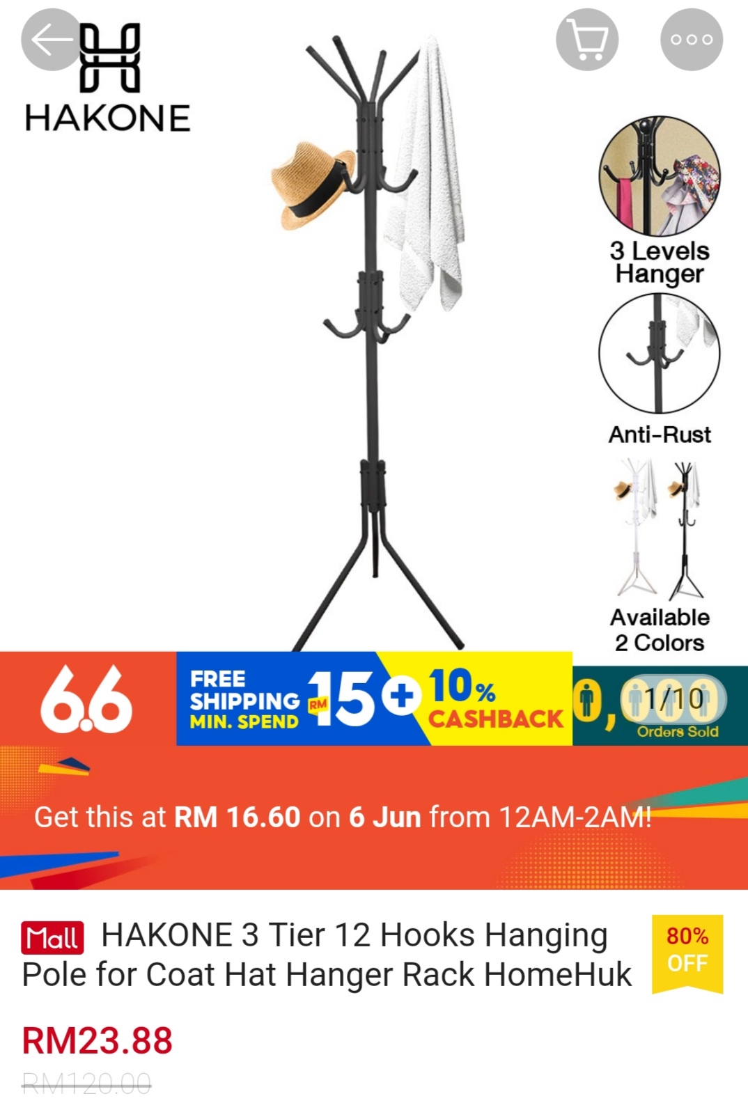 ▪ HAKONE 3 Tier 12 Hooks Hanging Pole for Coat Hat Hanger Rack HomeHuk – RM120 RM16.60