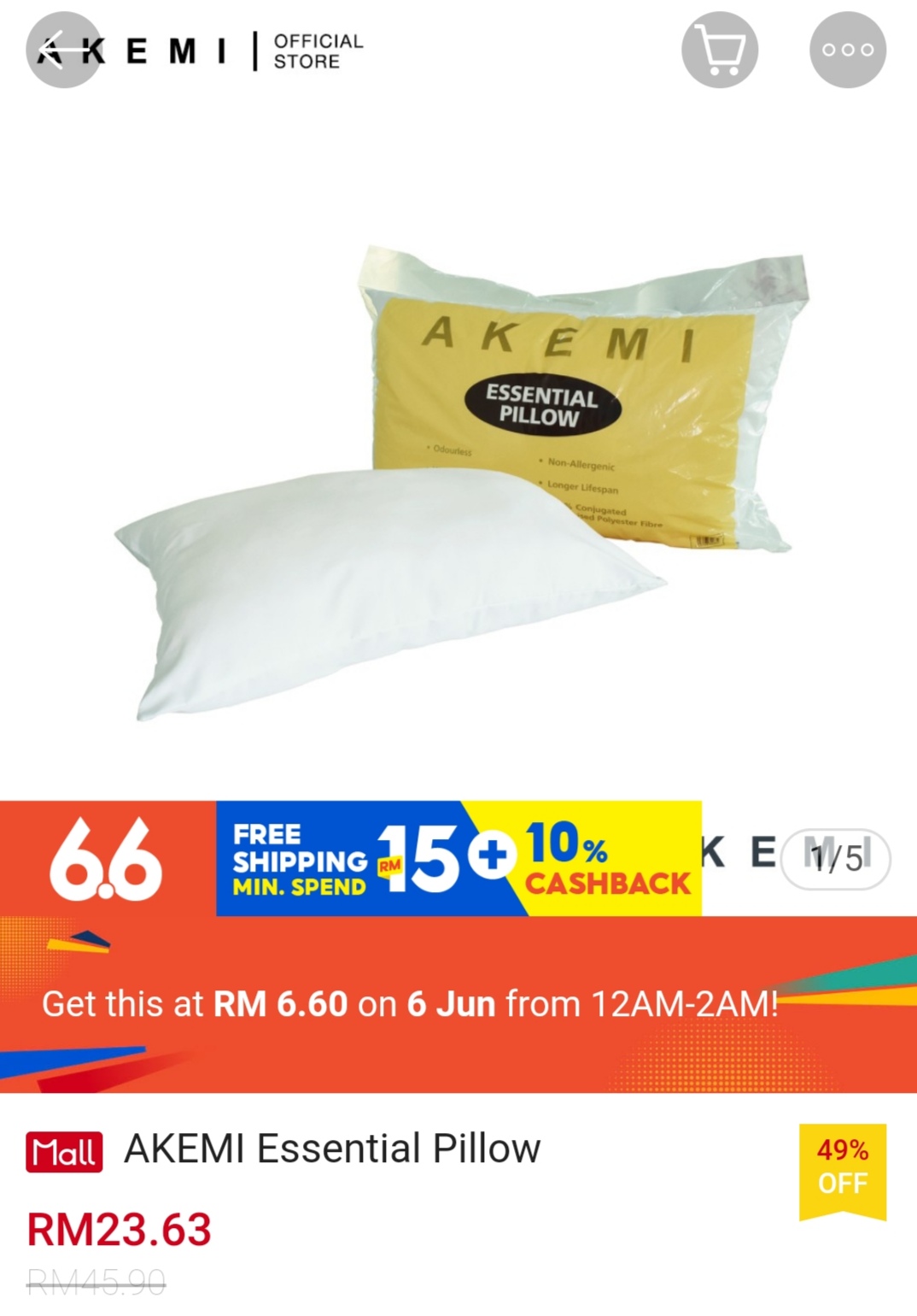 ▪ AKEMI Essential Pillow – RM45.90 RM6.60