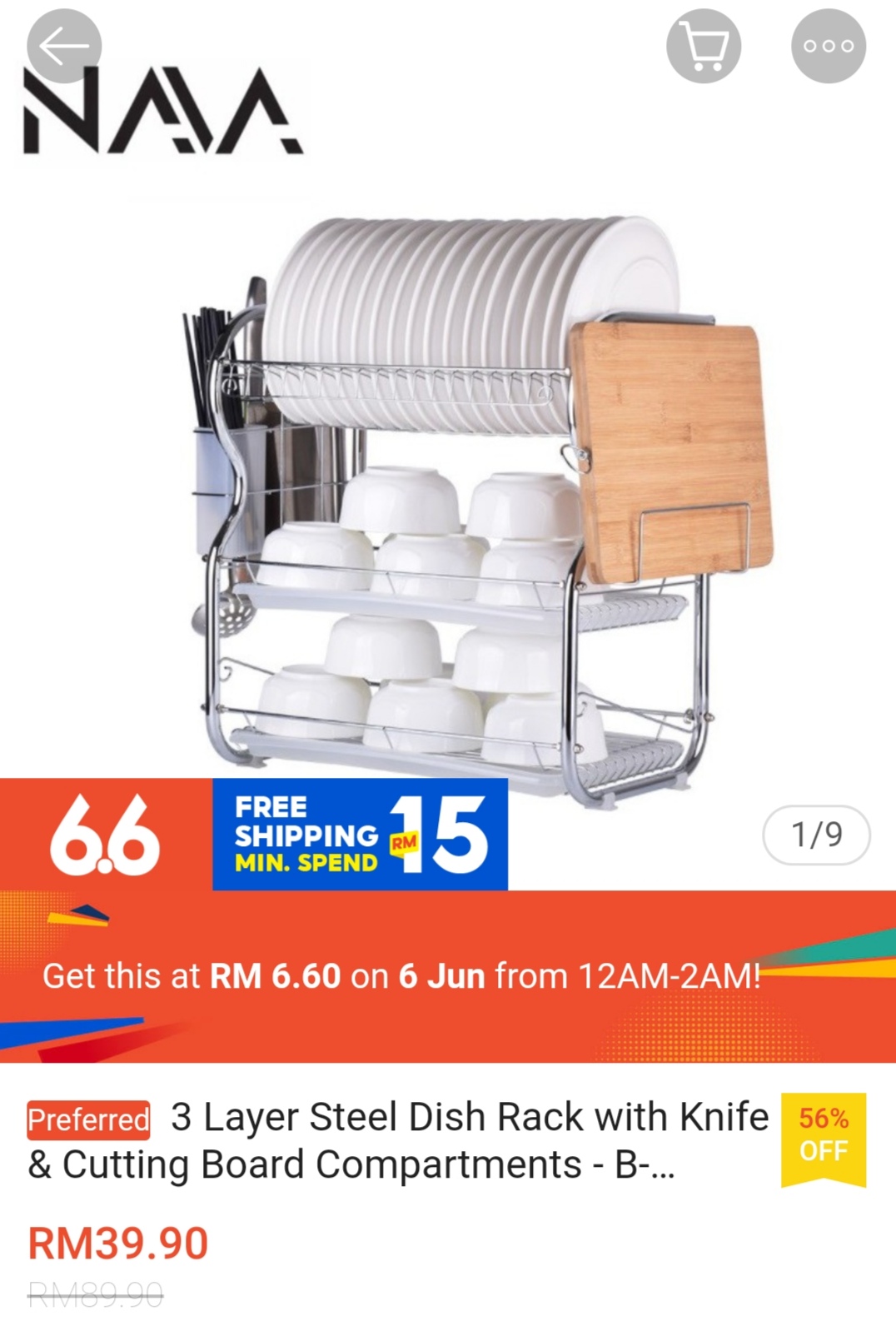 ▪ 3 Layer Steel Dish Rack with Knife & Cutting Board Compartments – B-Shape – RM39.90 RM6.60