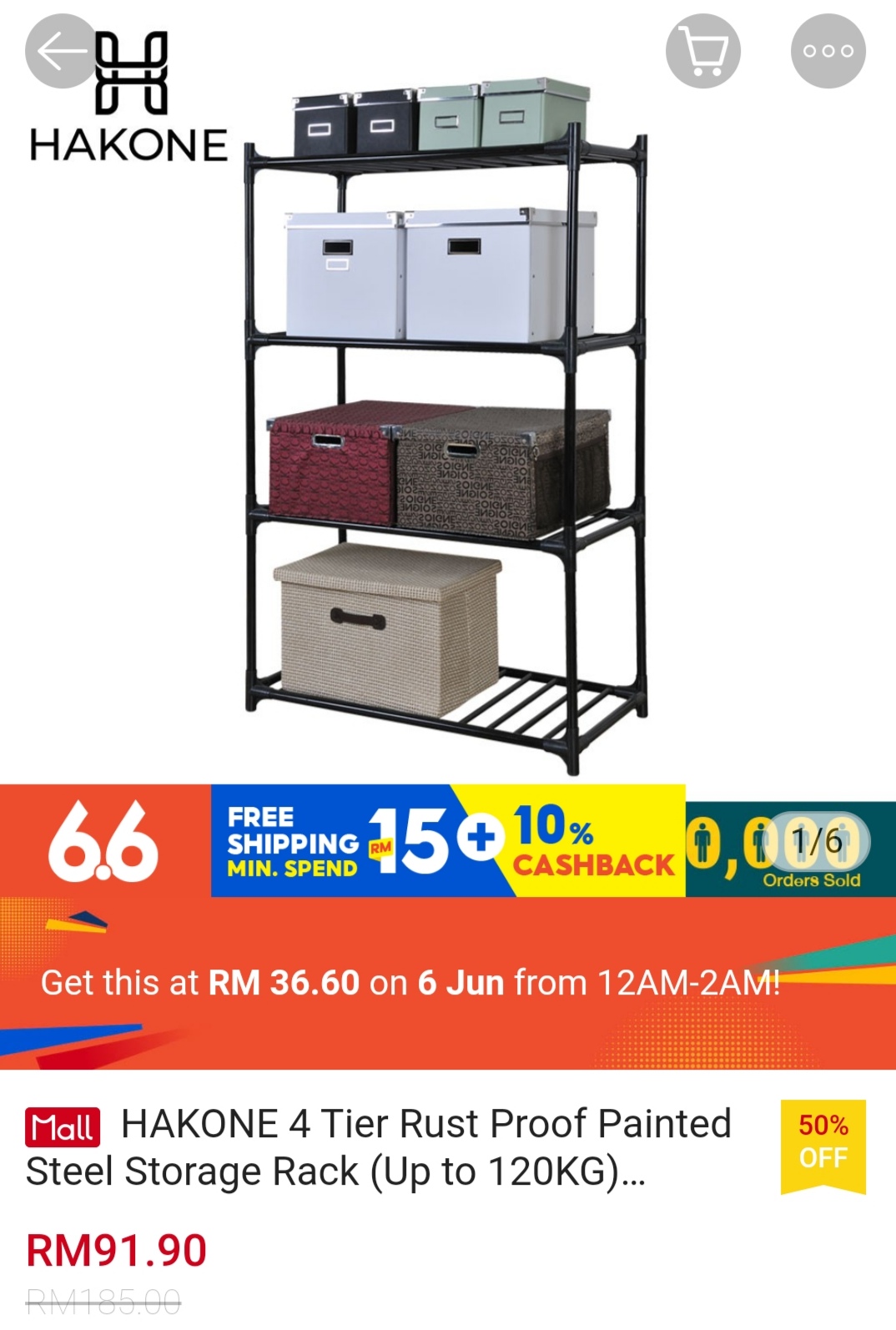 ▪ HAKONE 4 Tier Rust Proof Painted Steel Storage Rack (Up to 120KG) HomeHuk – RM185 RM36.60