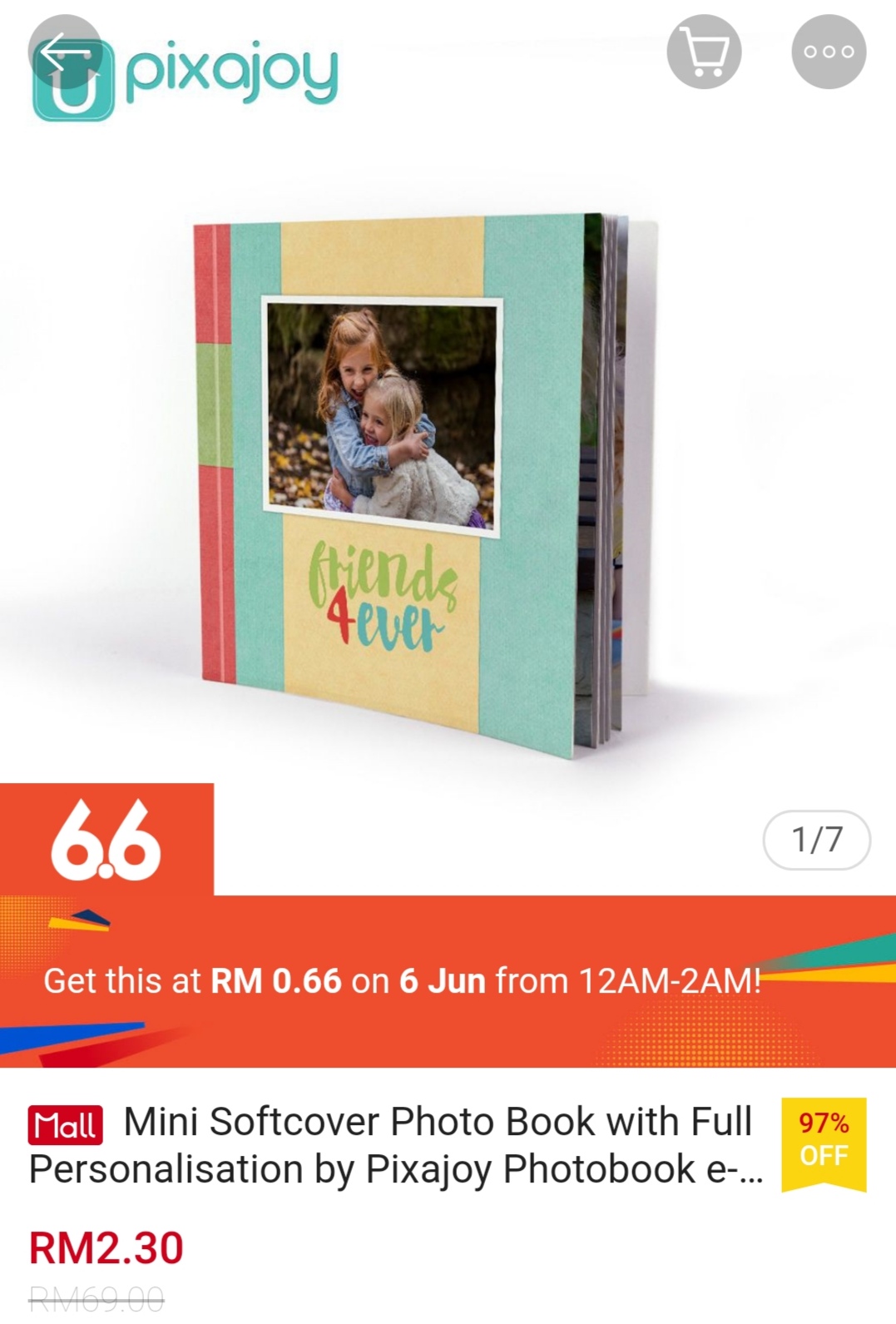 ▪ Mini Softcover 6″ x 6″ Photo Book with Full Personalisation by Pixajoy Photobook [e-Voucher] – RM2.30 RM0.66