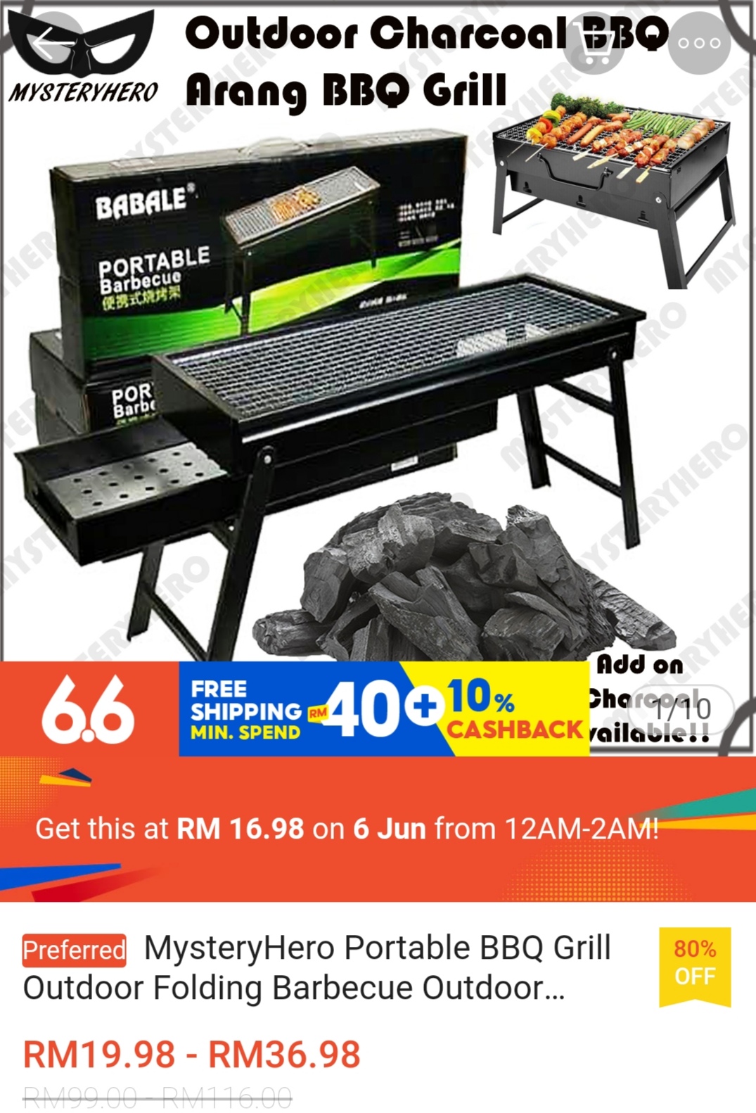 ▪ Portable BBQ Grill Outdoor Folding Barbecue Outdoor – RM18.98 – RM32.57 RM16.98
