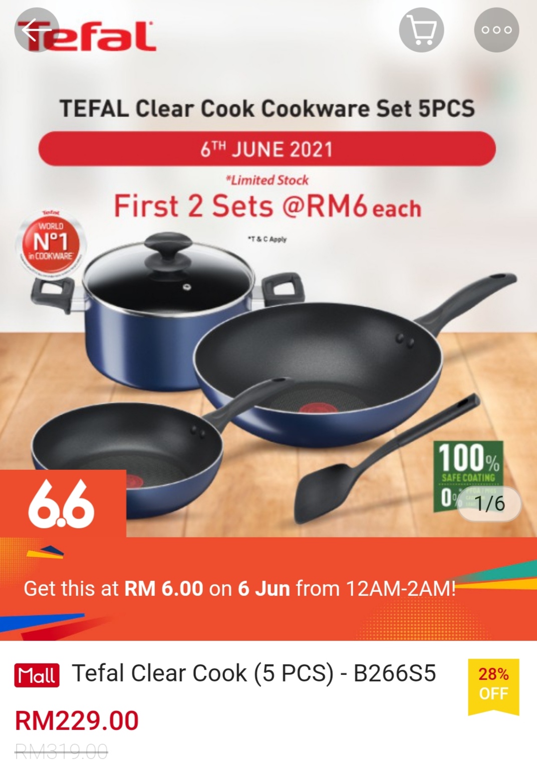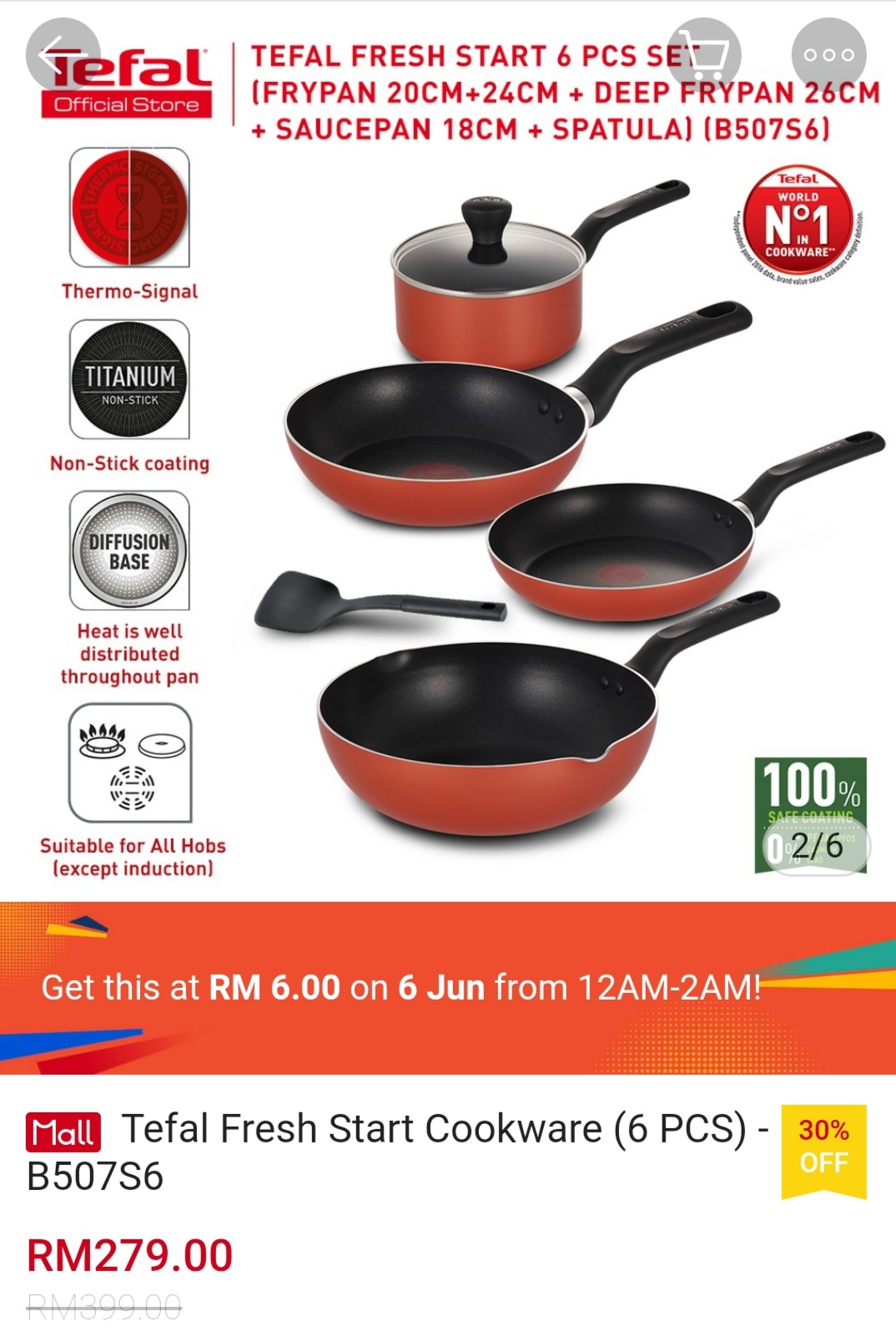 ▪ Tefal Fresh Start Cookware (6 PCS) – B507S6 – RM399 RM6