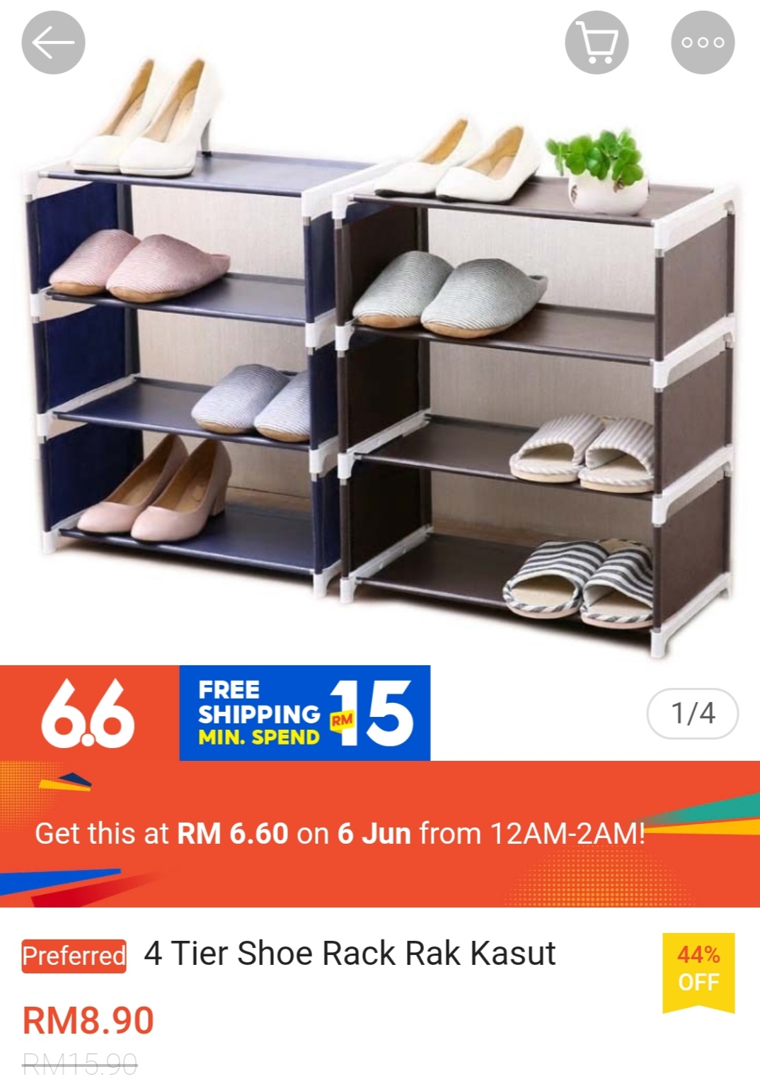 ▪ 4 Tier Shoe Rack Rak Kasut – RM15.90 RM6.60