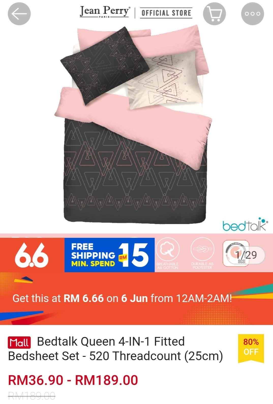 ▪ Bedtalk Queen 4-IN-1 Fitted Bedsheet Set – 520 Threadcount (25cm) – RM189 RM6.66