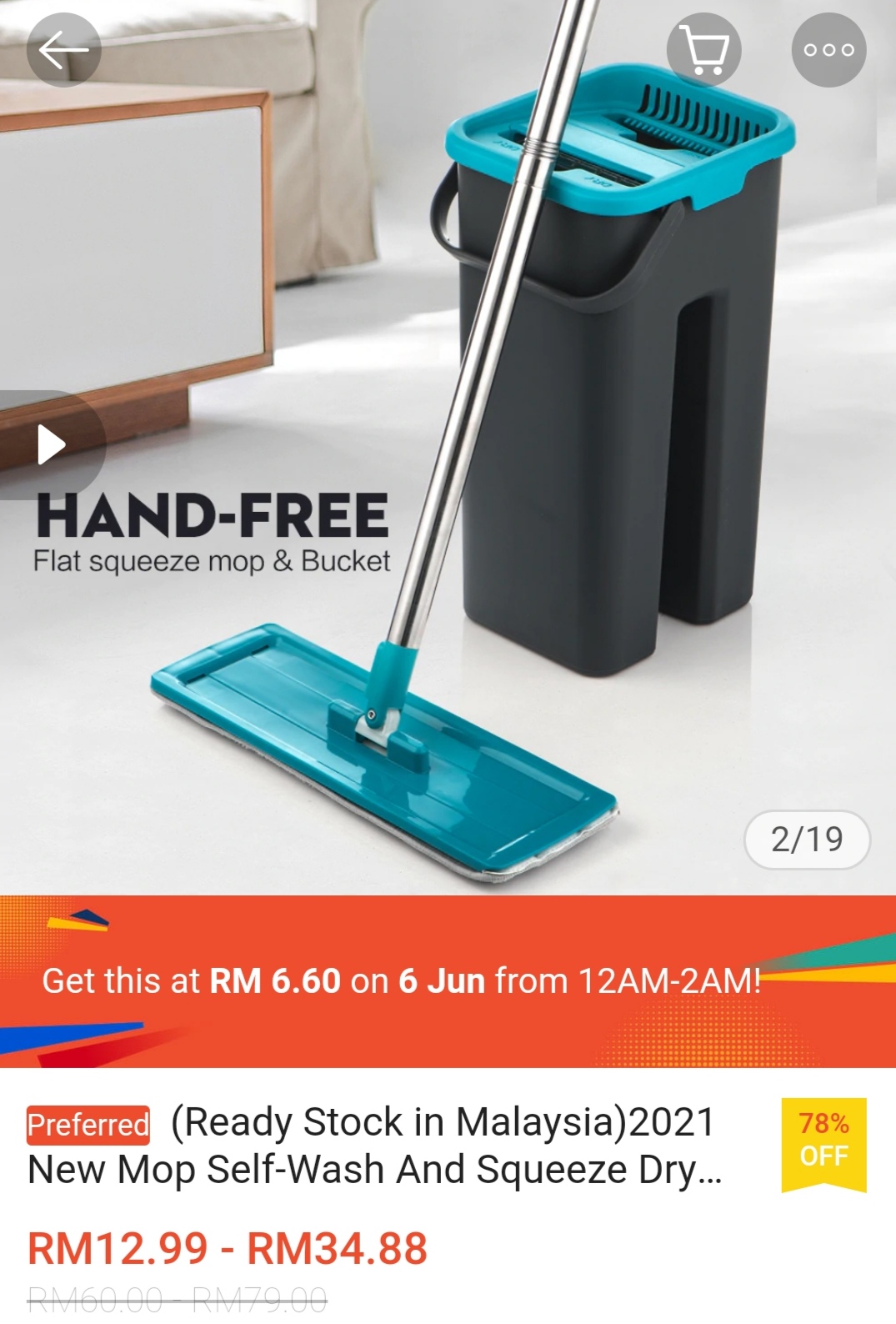 ▪ Mop Self-Wash And Squeeze Dry Flat Mop With Bucket 2 Mop Pads – RM12.99 – RM34.88 RM6.60