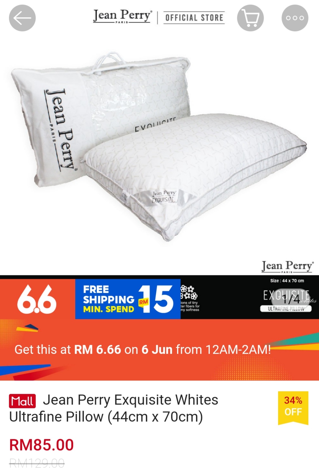 ▪ Jean Perry Exquisite Whites Ultrafine Pillow (44cm x 70cm) – RM90.30 RM6.66
