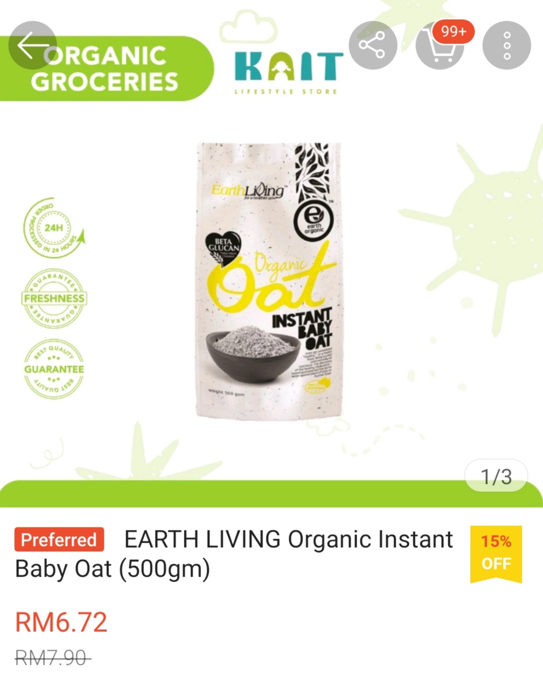 每个星期三Shopee Mum’s Club 都会发放新折扣礼券!这次推出一系列的宝宝食品及有机食品促销优惠!值得购买就是这款有机燕麦(Baby Oat ),一包只需RM5.71!