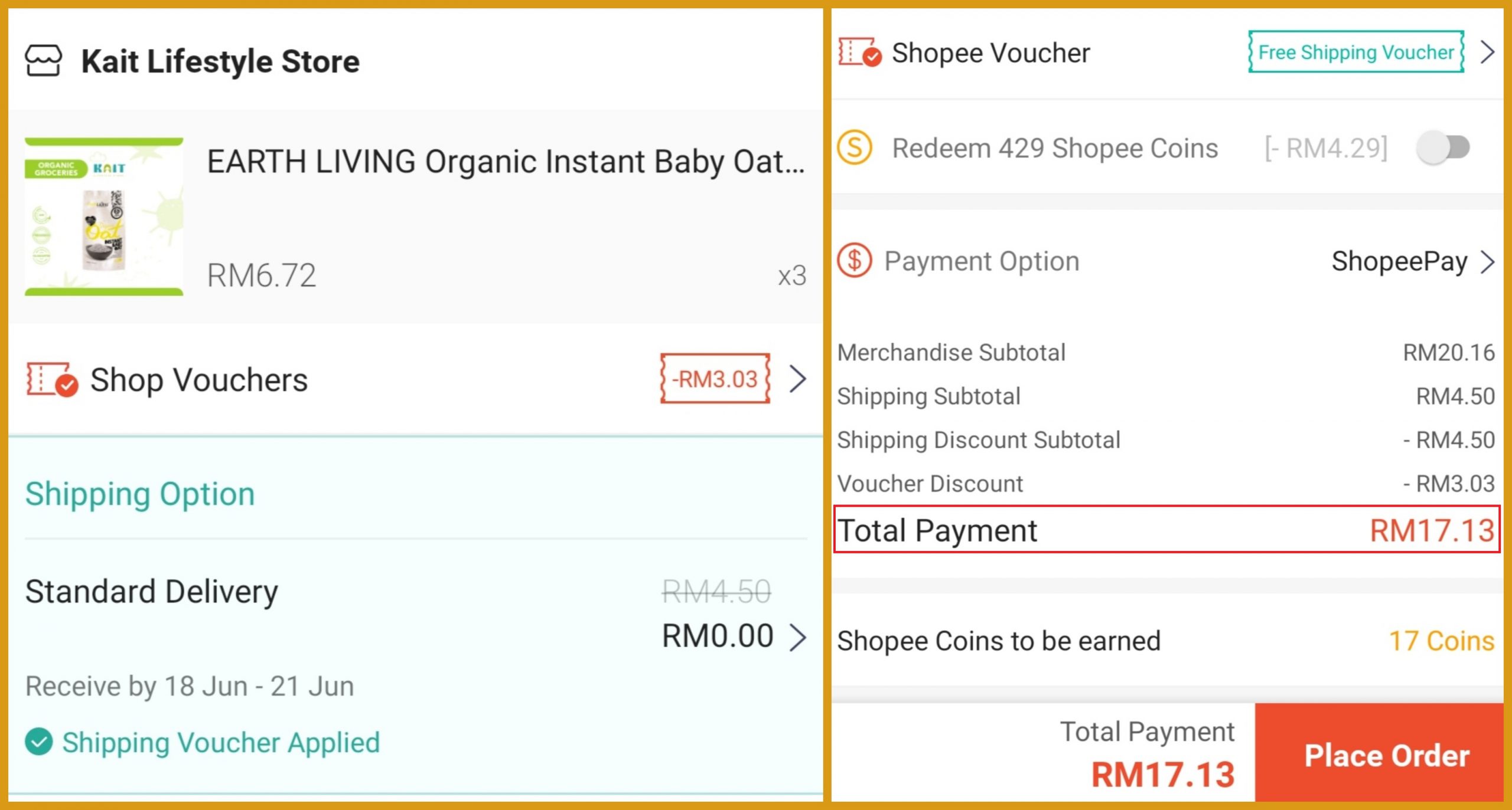 ※  配合商家15% 折扣券+ Free Shipping Voucher,一包Baby Oat 燕麦只需RM5.71!