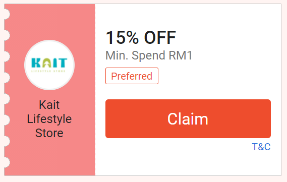 ① 首先浏览到shopee mum’s club 领取Kait Lifestyle Store 15%折扣券!