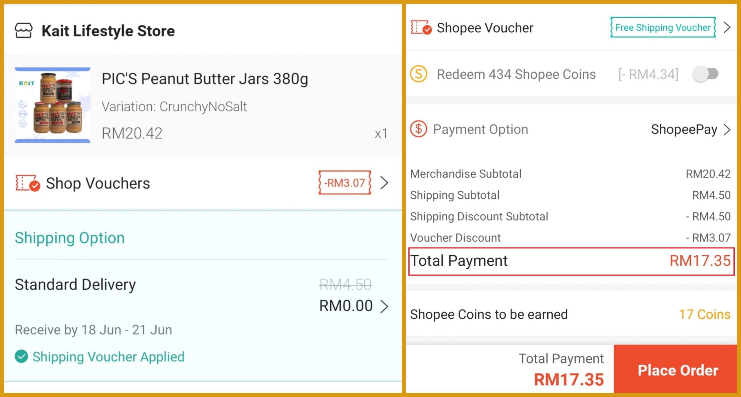 ※ 配合商家15% 折扣券+ Free Shipping Voucher,一罐花生酱只需RM17.35