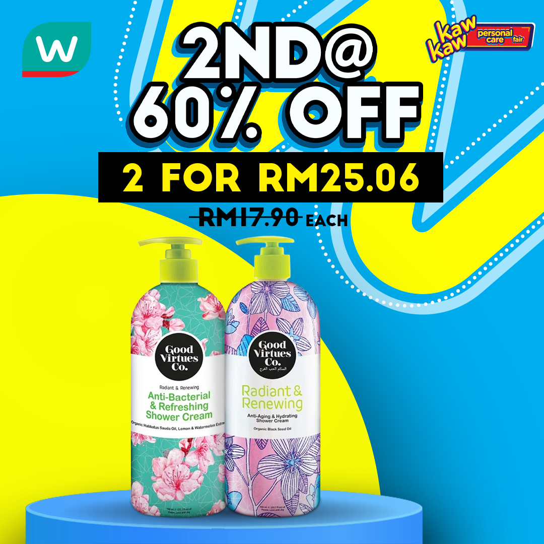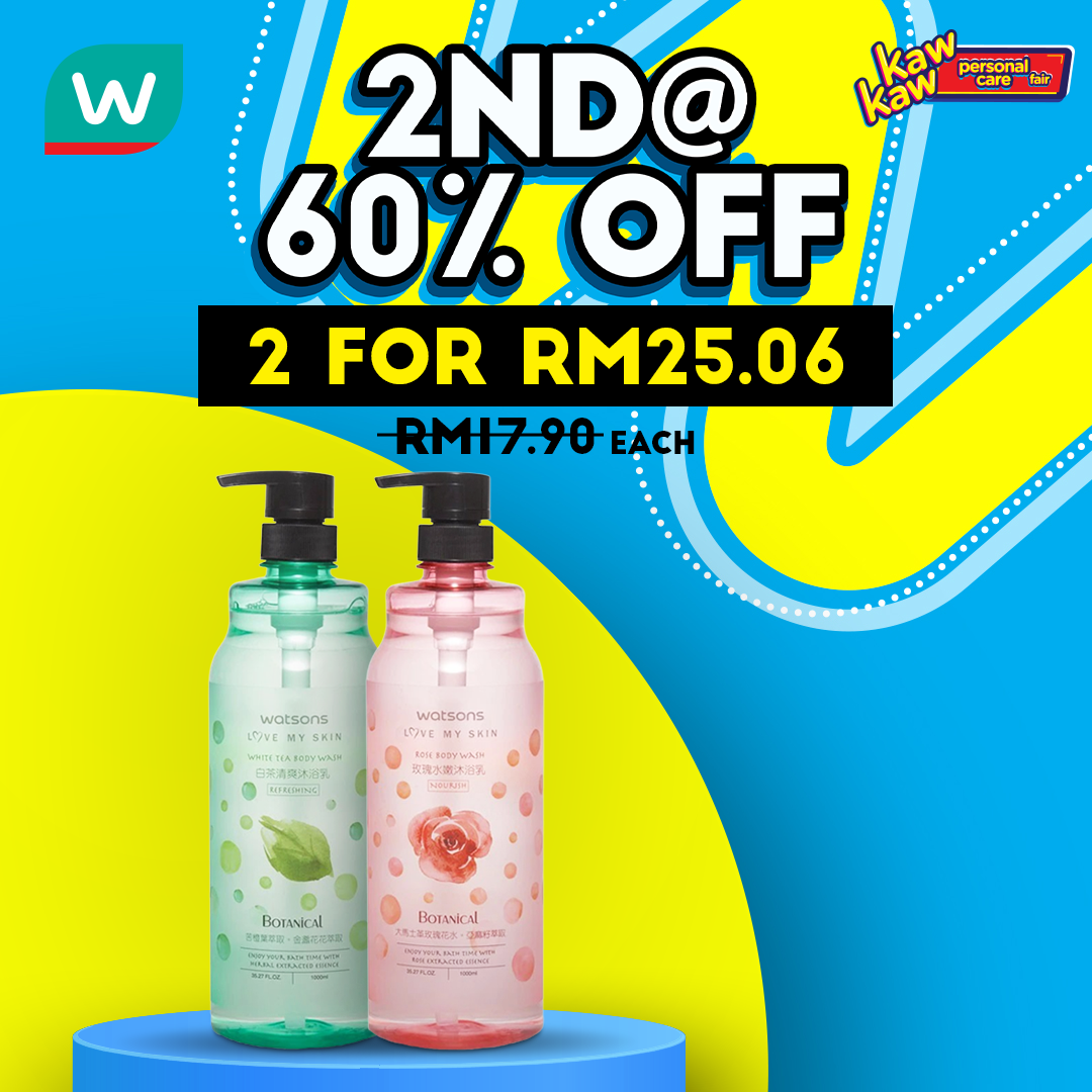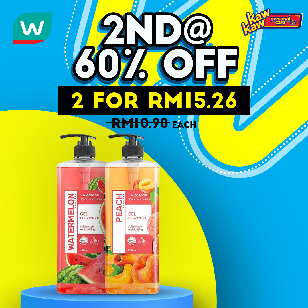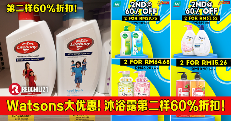 想要添购沐浴露的朋友,如今是时候了!大马Watsons 正推出品牌沐浴露大促销!第二瓶可享有60%折扣!