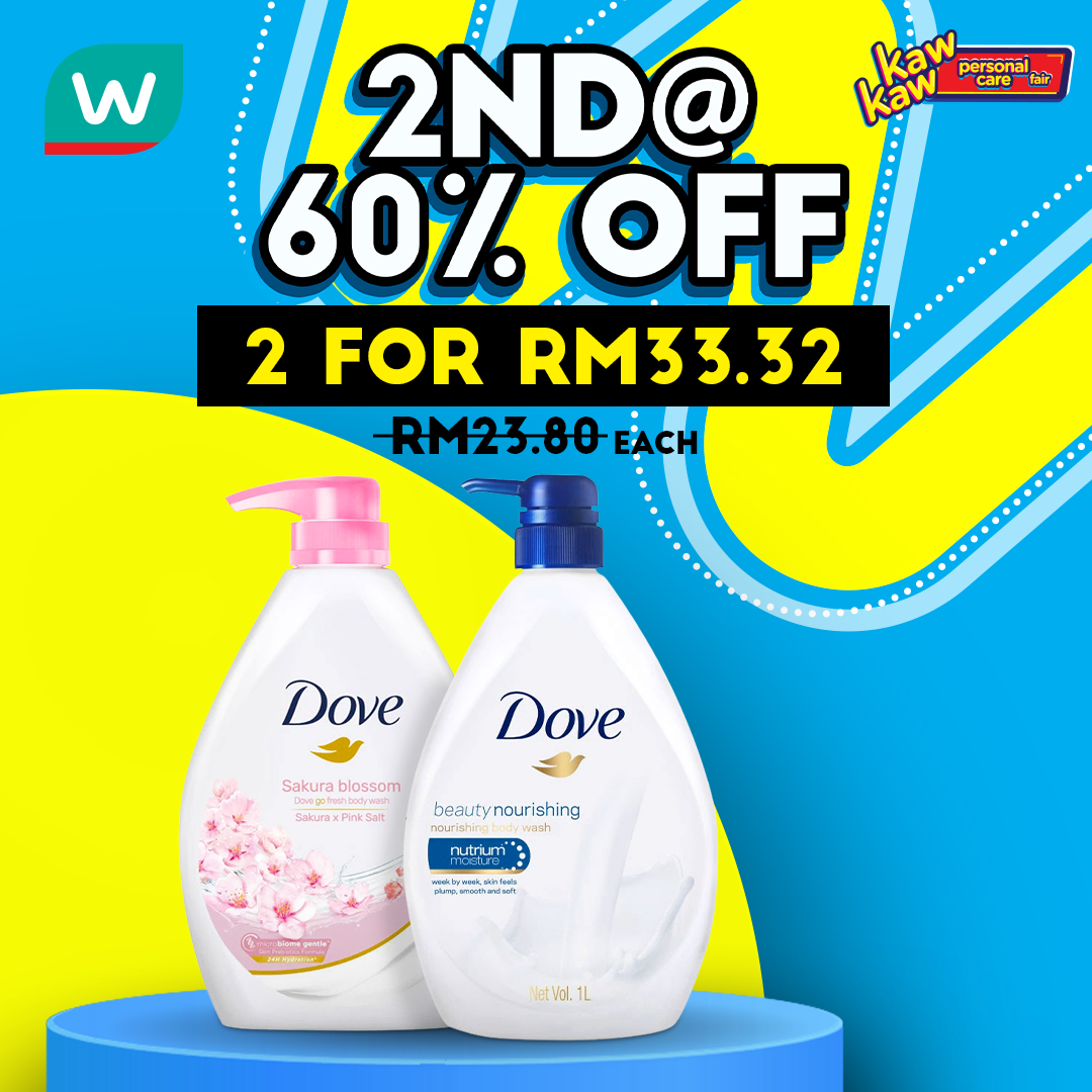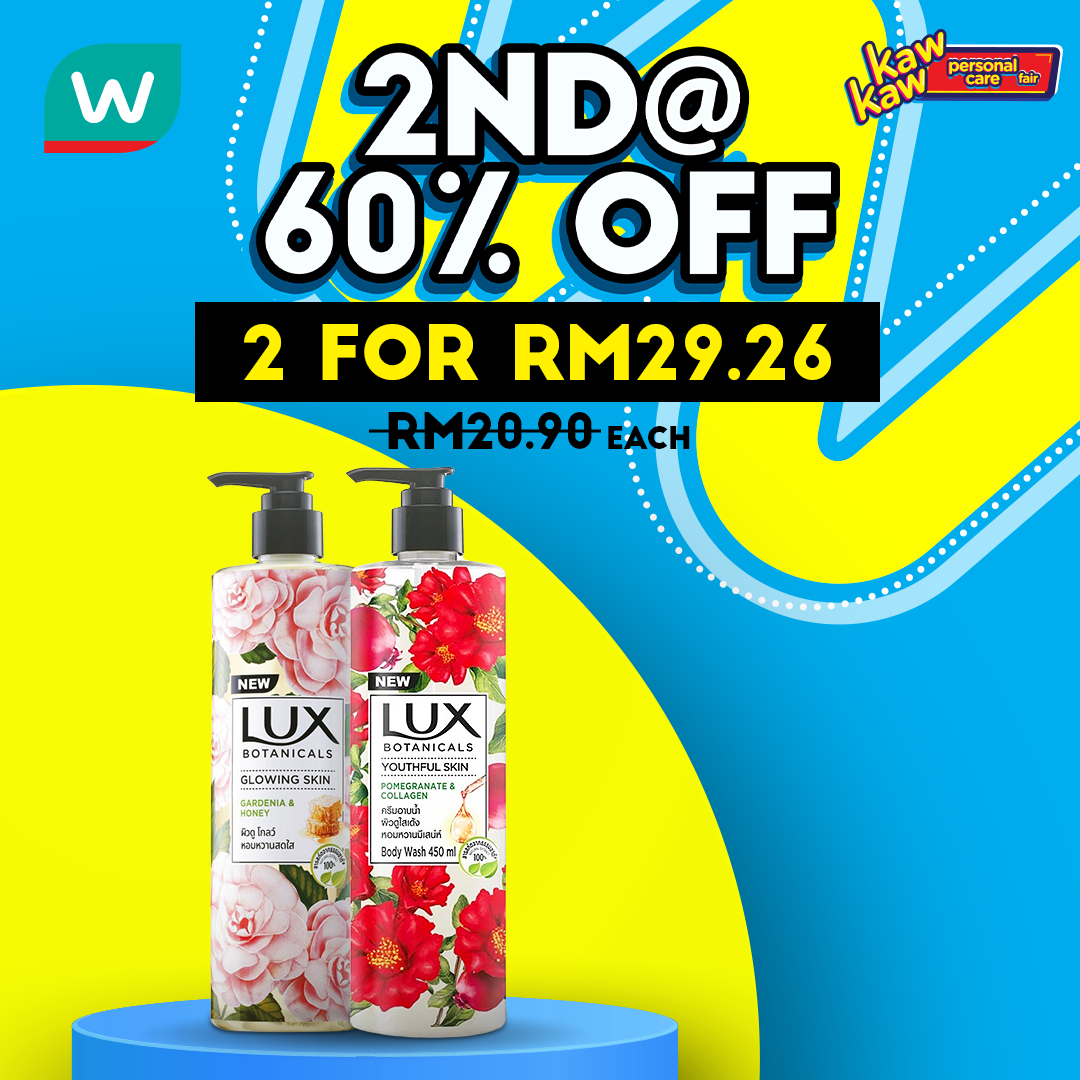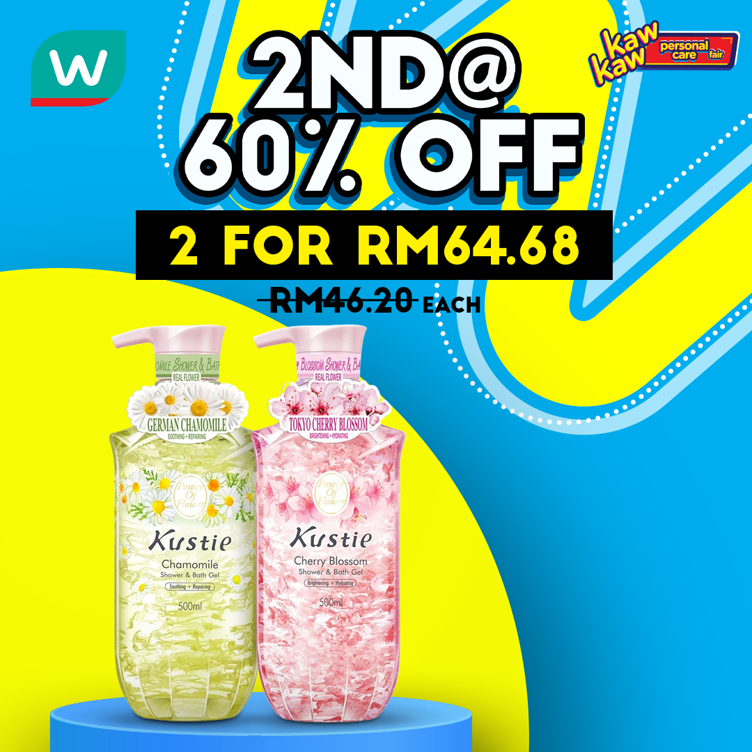 想要添购沐浴露的朋友,如今是时候了!大马Watsons 正推出品牌沐浴露大促销!第二瓶可享有60%折扣!