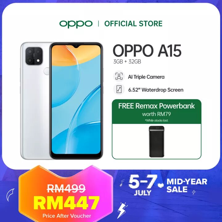 ▪ OPPO A15 Smartphone (3GB RAM + 32GB RAM) – RM499 RM447【点击这里】