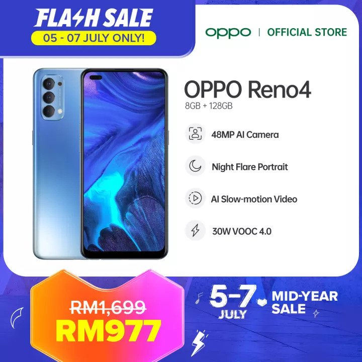 ▪ OPPO Reno4 Smartphone (8GB RAM+ 128GB ROM) – RM1699 RM977【点击这里】
