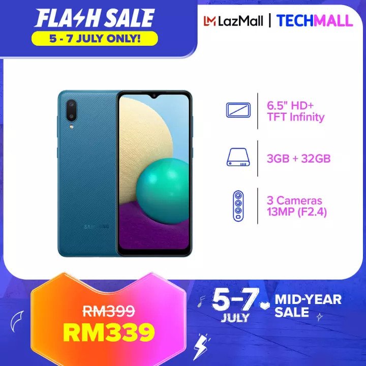 ▪ Samsung Galaxy A02 Smartphone (3GB RAM + 32GB ROM) – RM399 RM339【点击这里】