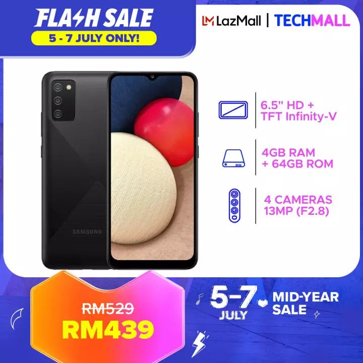 ▪ Samsung Galaxy A02s Smartphone (4GB RAM + 64GB ROM) – RM529 RM439【点击这里】