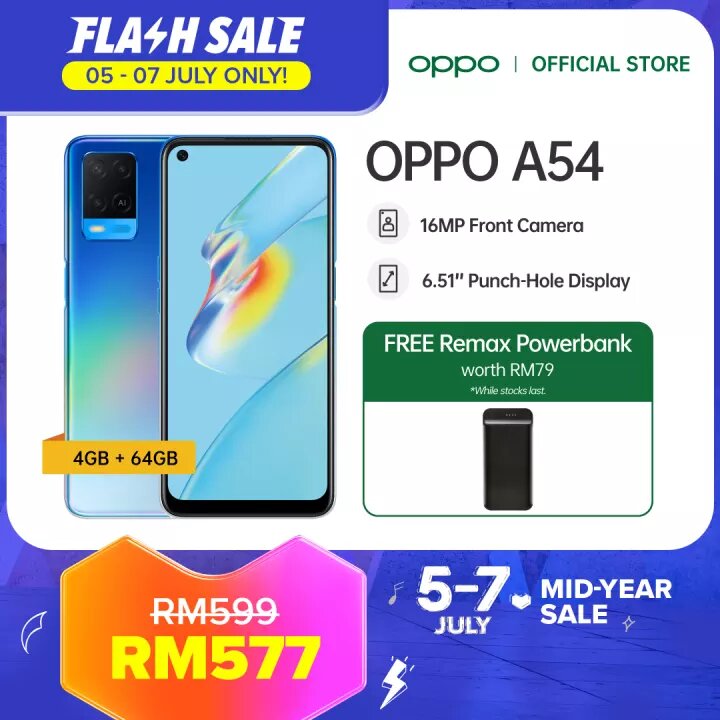 ▪ OPPO A54 Smartphone (4GB RAM + 128GB ROM) – RM699 RM637【点击这里】