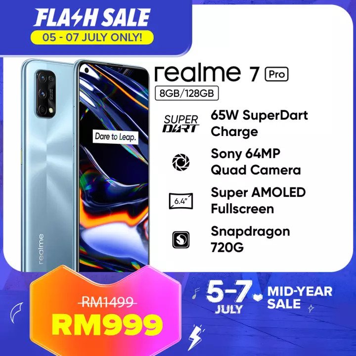 ▪ realme 7 5G Smartphone (8GB RAM + 128GB ROM) – RM1299 RM799【点击这里】