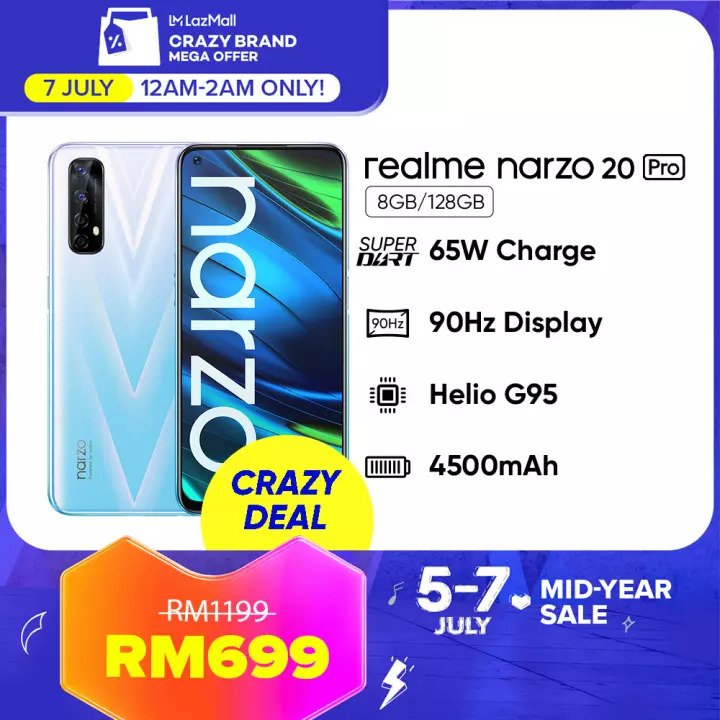 ▪ realme narzo 20 Pro Smartphone (8GB RAM + 128GB ROM) – RM1199 RM699【点击这里】