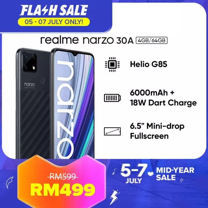 ▪ realme narzo 30A (4GB RAM + 64GB ROM) – RM599 RM499【点击这里】