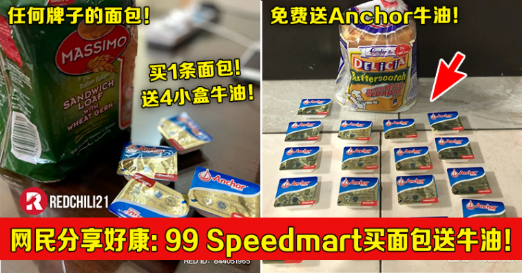 根据网友们的发文分享,只要在 99 Speedmart 分店购买1条吐司,就可以免费获得4小盒的 Anchor 牛奶!