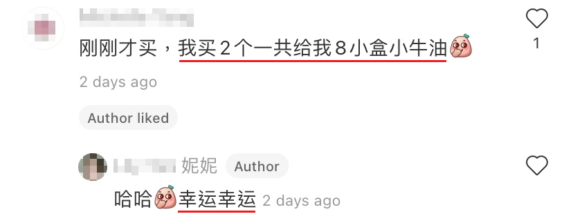 ▼ 还有其他网友的分享,真的是1条面包换4小盒的牛油哦!