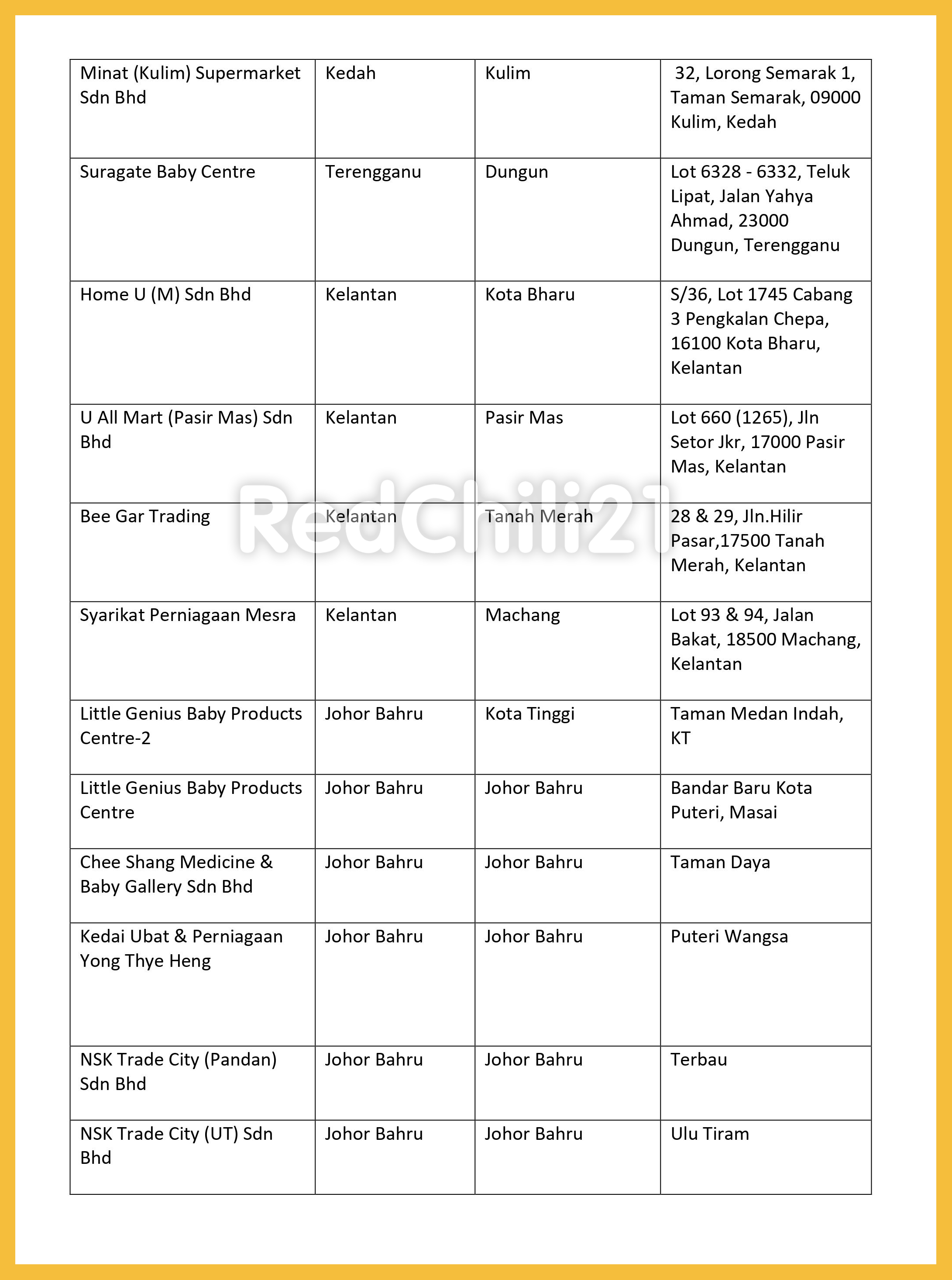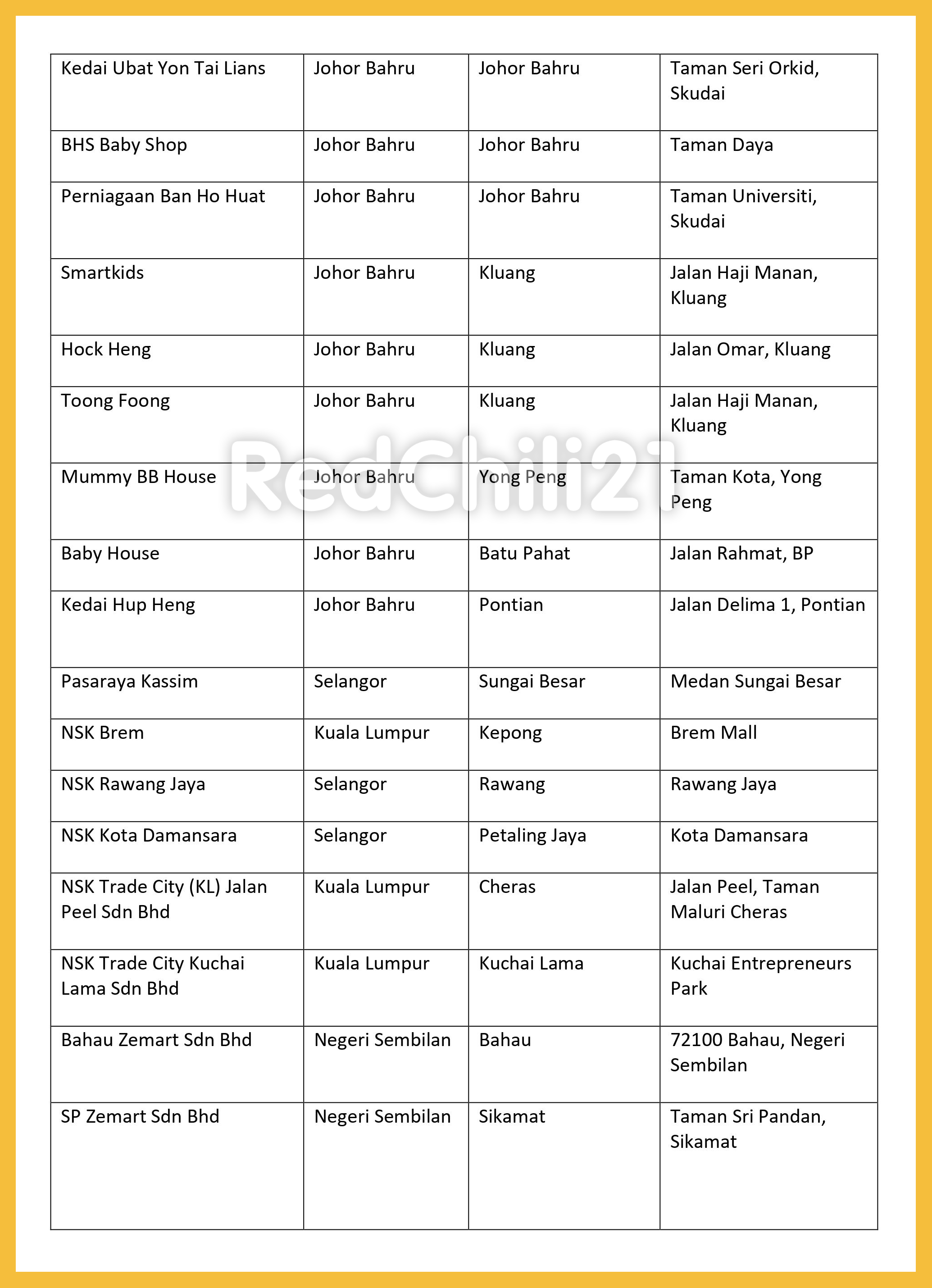 ▼ 你可在以下指定的婴儿用品店及药店分行兑换: