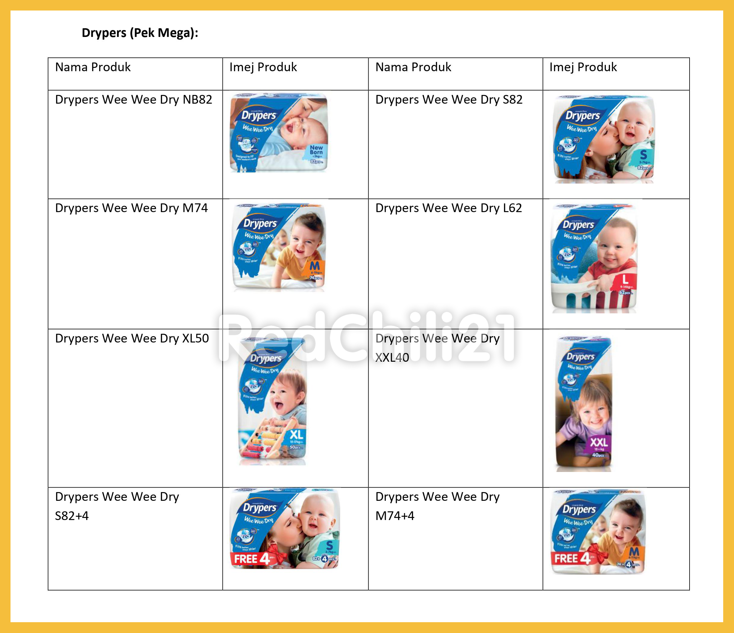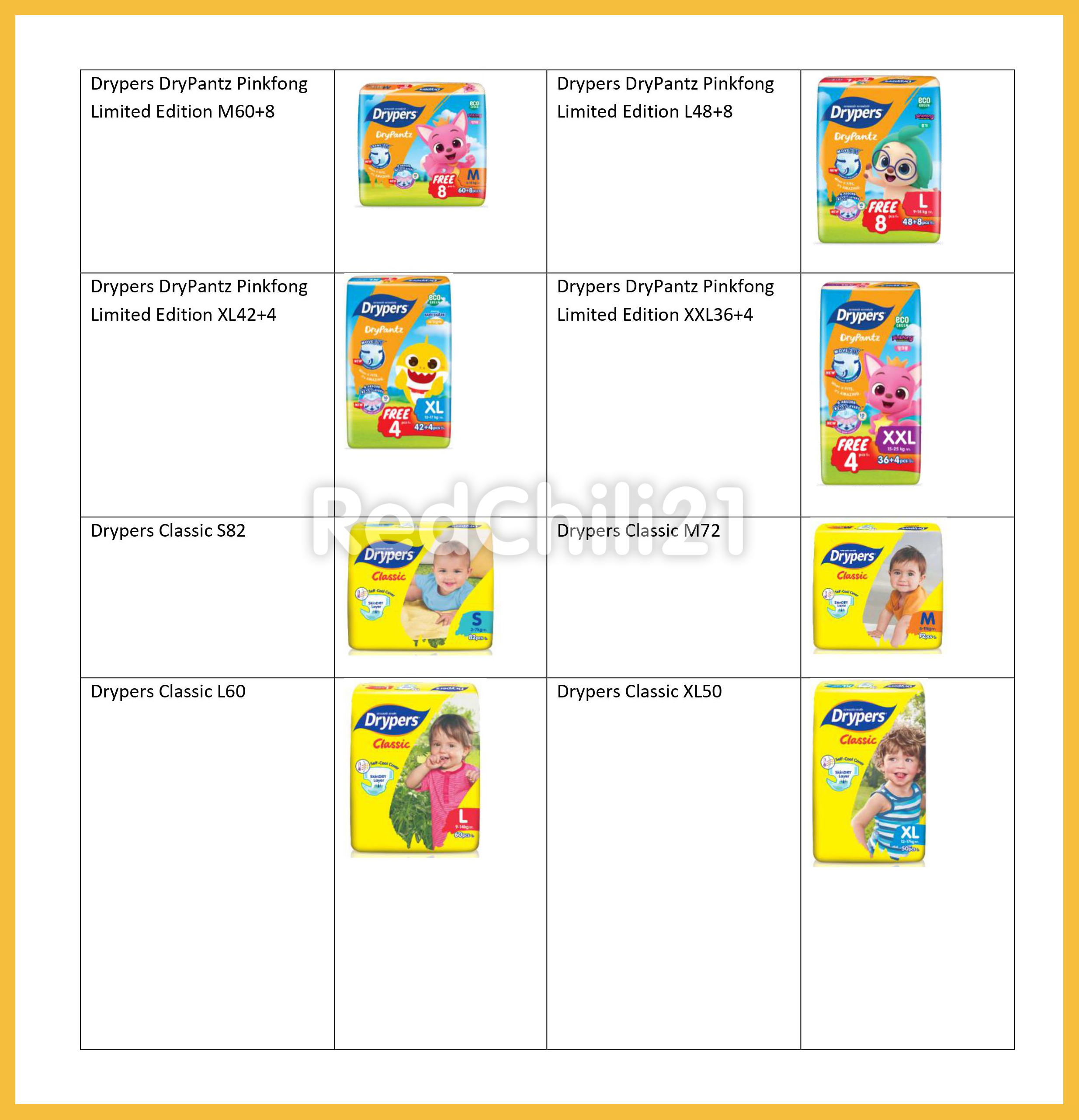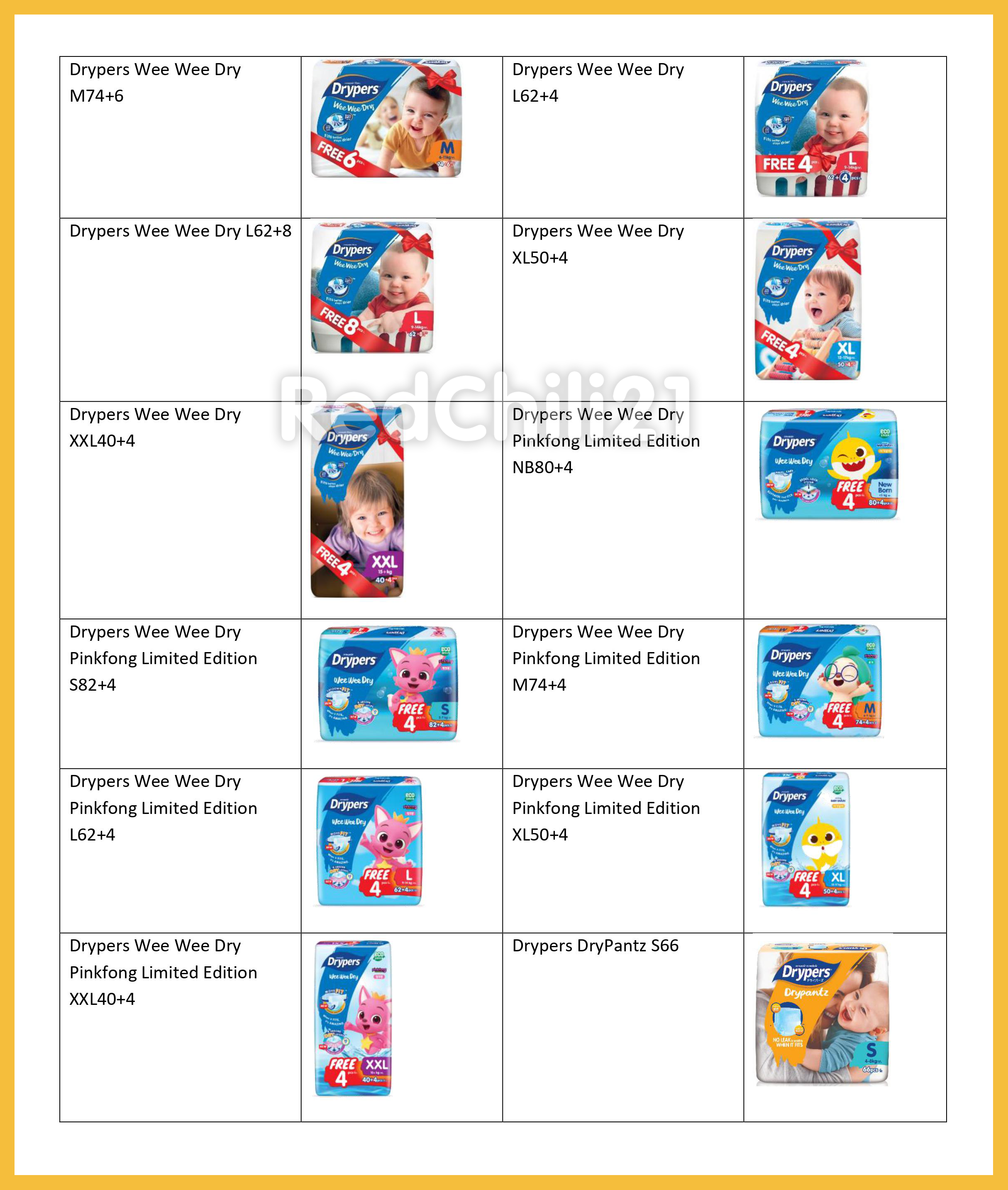 有兴趣兑换的朋友,可从即日起至9月30日前往指定售卖婴儿用品店或药店等兑换。需要注意的是,必须收集指定空袋子数量才能兑换(不接受旧款式Drypers 纸尿片包装)