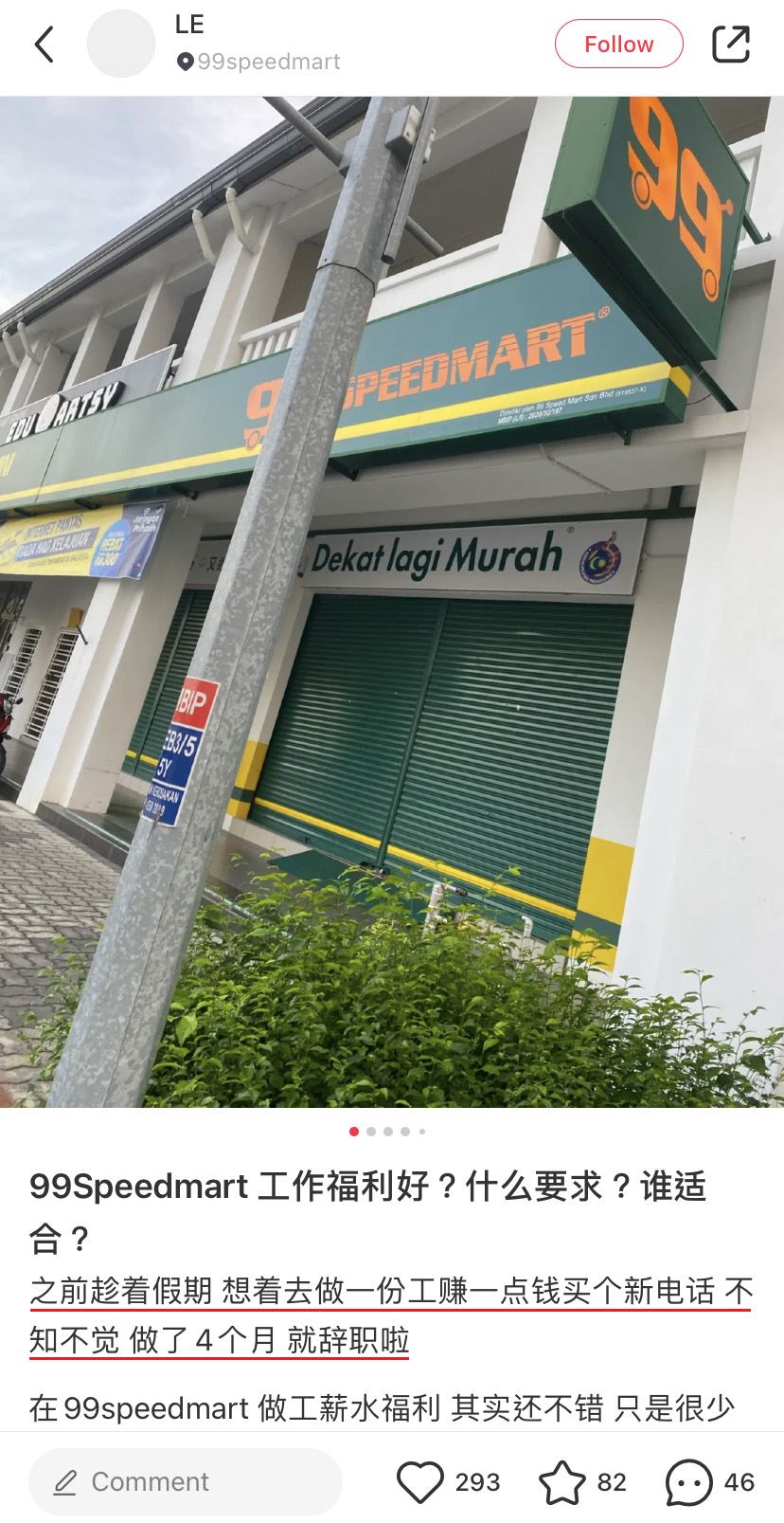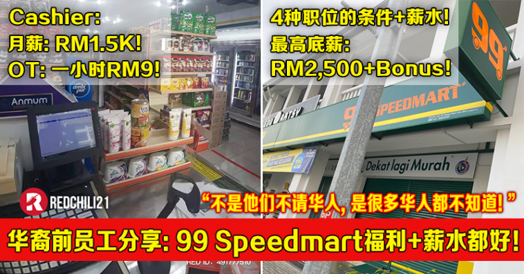 一名曾在 99 Speedmart 上过班的华裔女生近日透过小红书PO文,曝光 99 Speedmart 的员工福利以及各个职位的要求条件和薪资。才知道原来在 99 Speedmart 上班是这么幸福的~