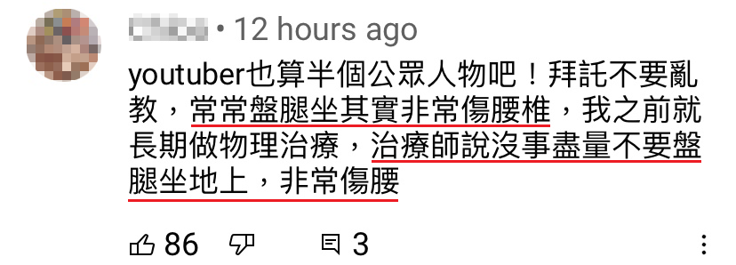 ▼ 不建议大家长期盘腿坐地上,对腰椎不好。